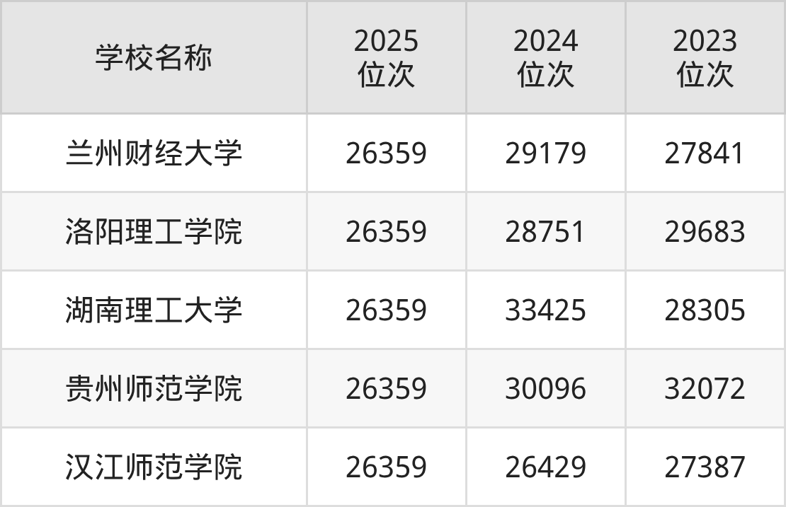 保底的大学:是从“较稳妥”院校中筛选近三年最低录取位次均稳定在26000名之后的院校,录取安全性高,可规避滑档风险。包含兰州财经大学、洛阳理工学院、湖南理工大学、贵州师范学院、汉江师范学院。