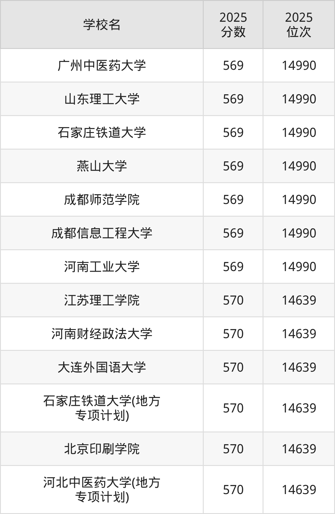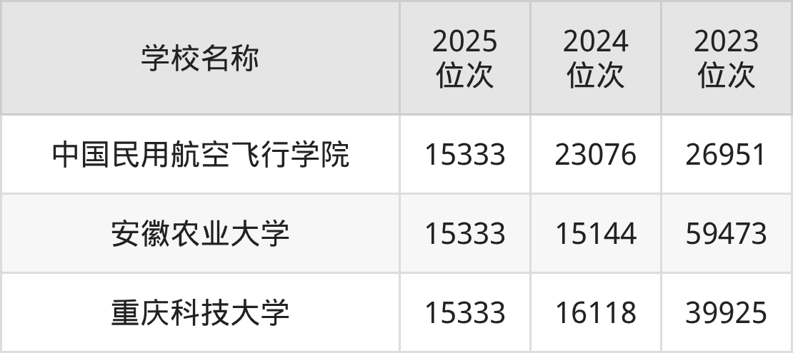 | 学校名称 | 2025 位次 | 2024 位次 | 2023 位次 |