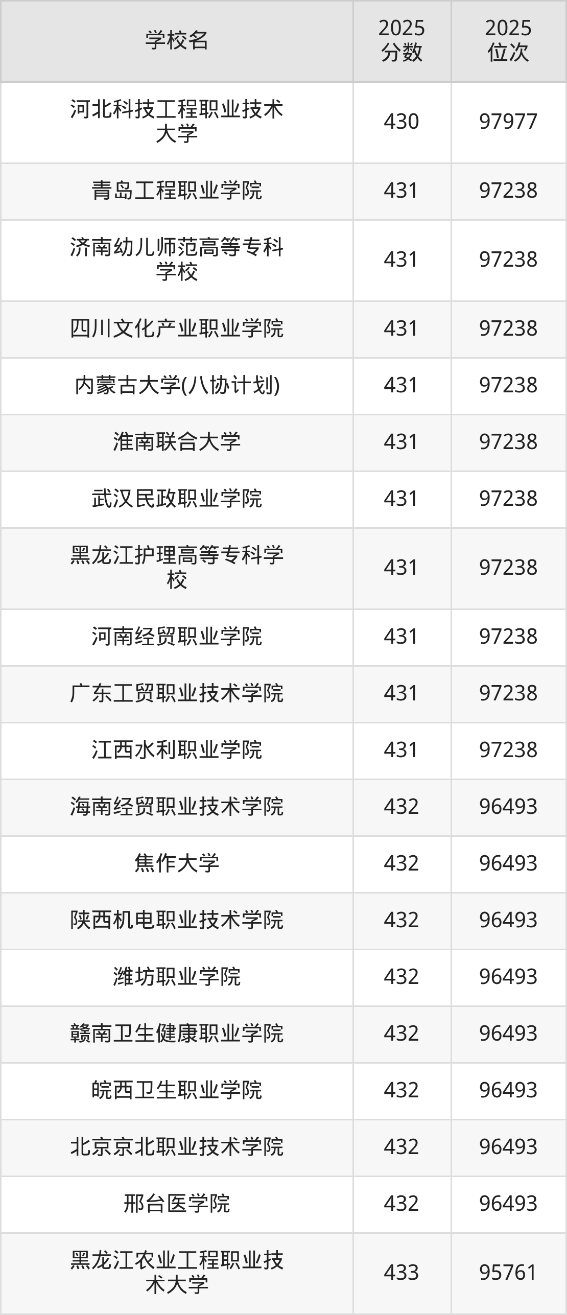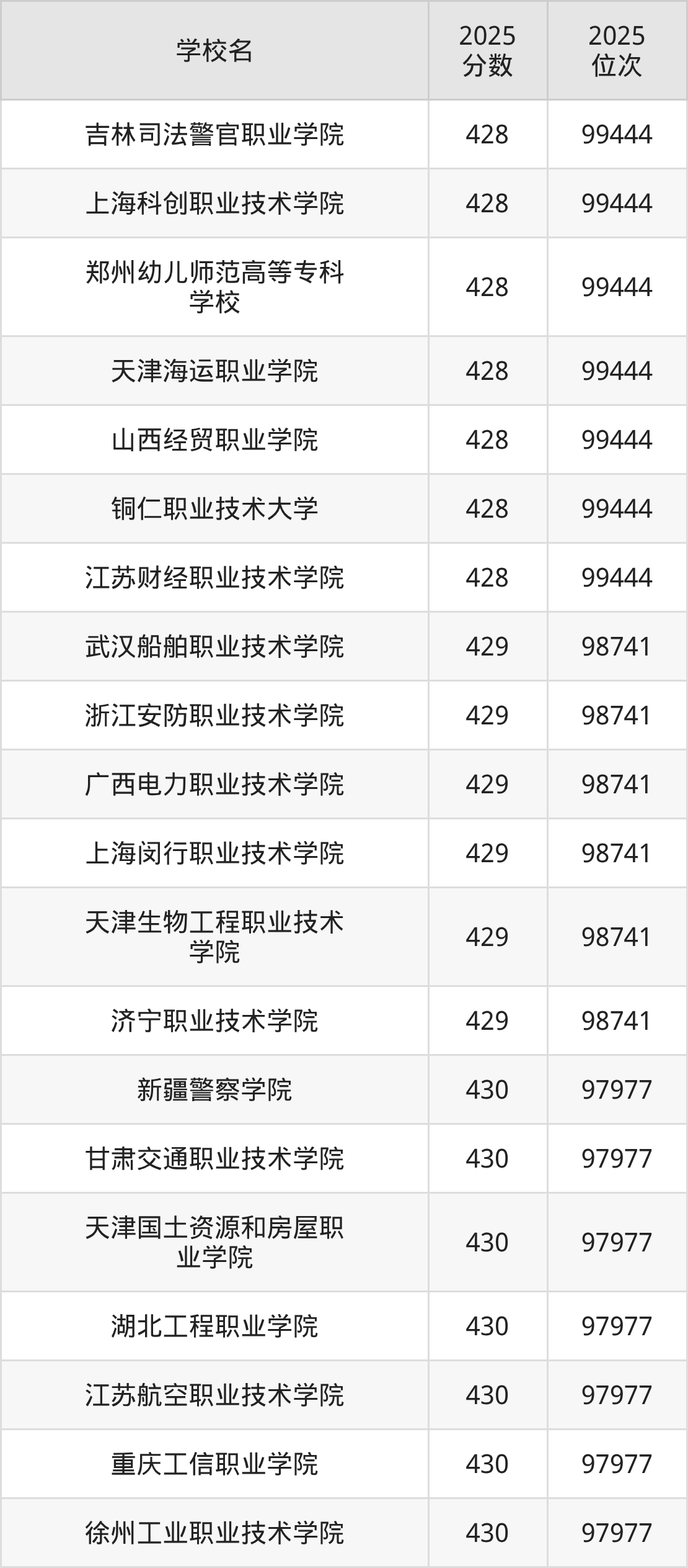 | 学校名 | 2025 分数 | 2025 位次 |
