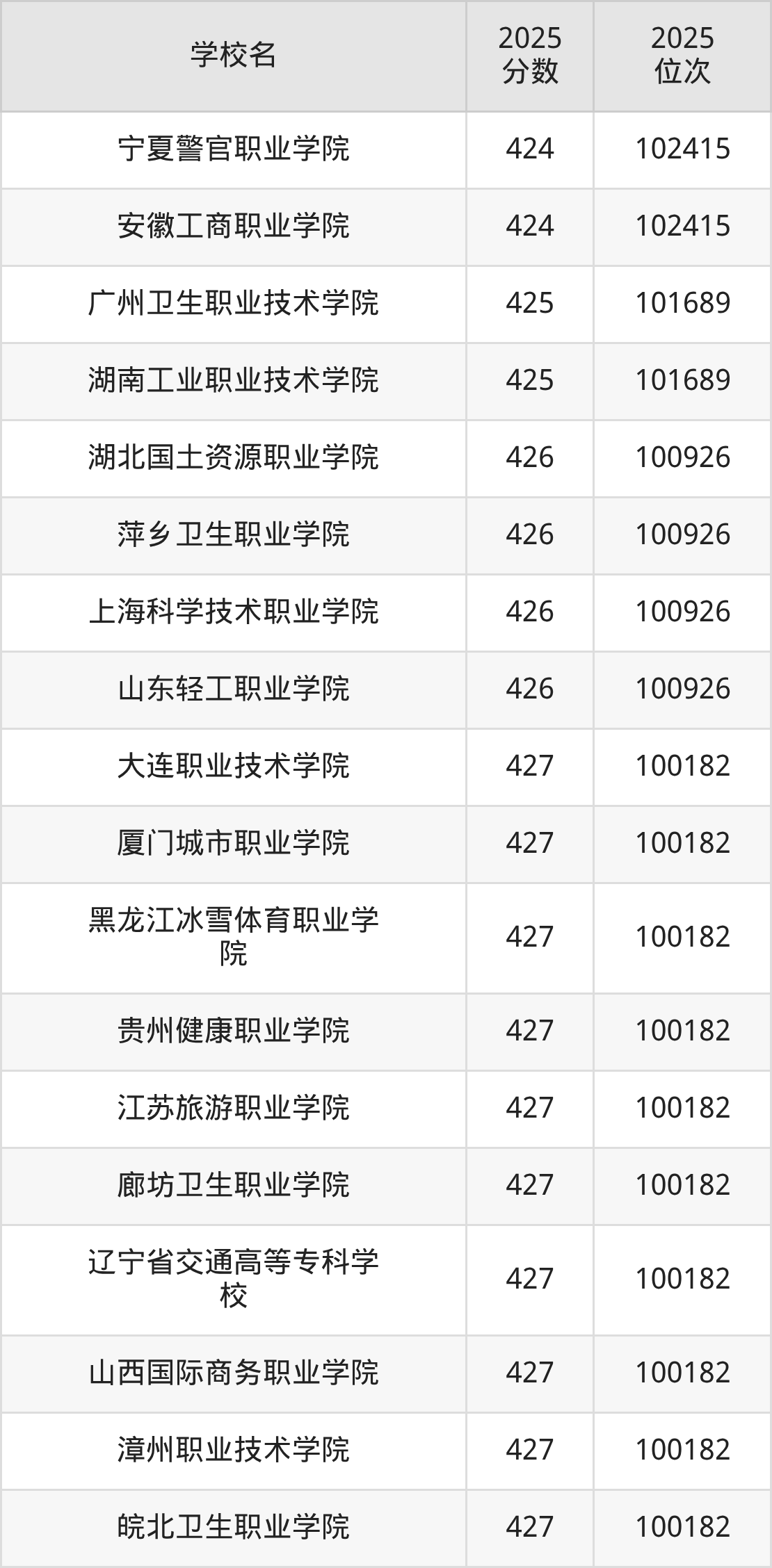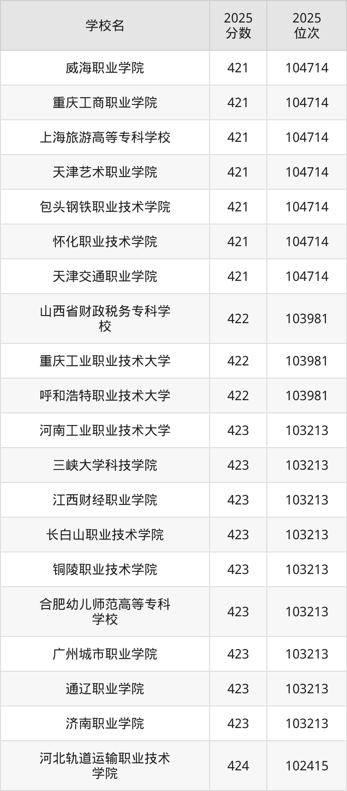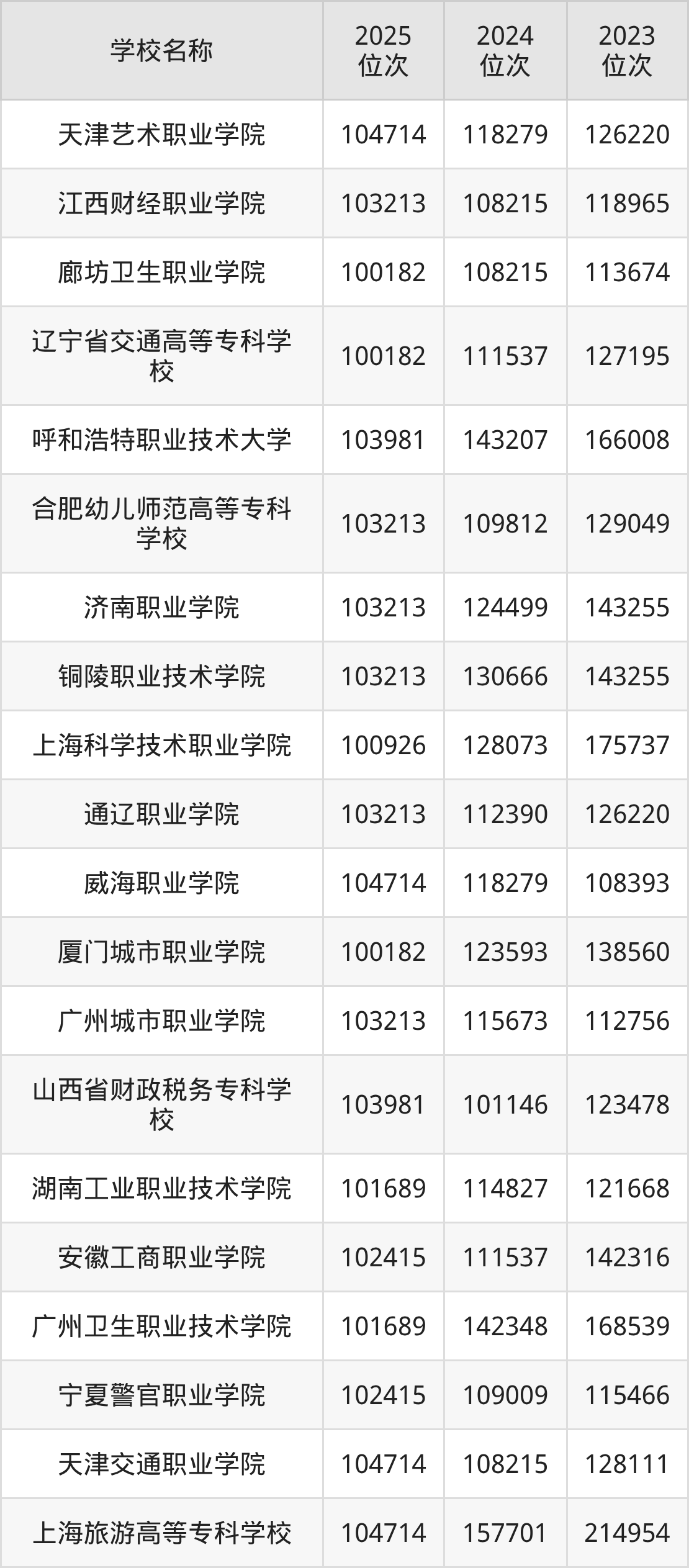| 学校名称 | 2025 位次 | 2024 位次 | 2023 位次 |