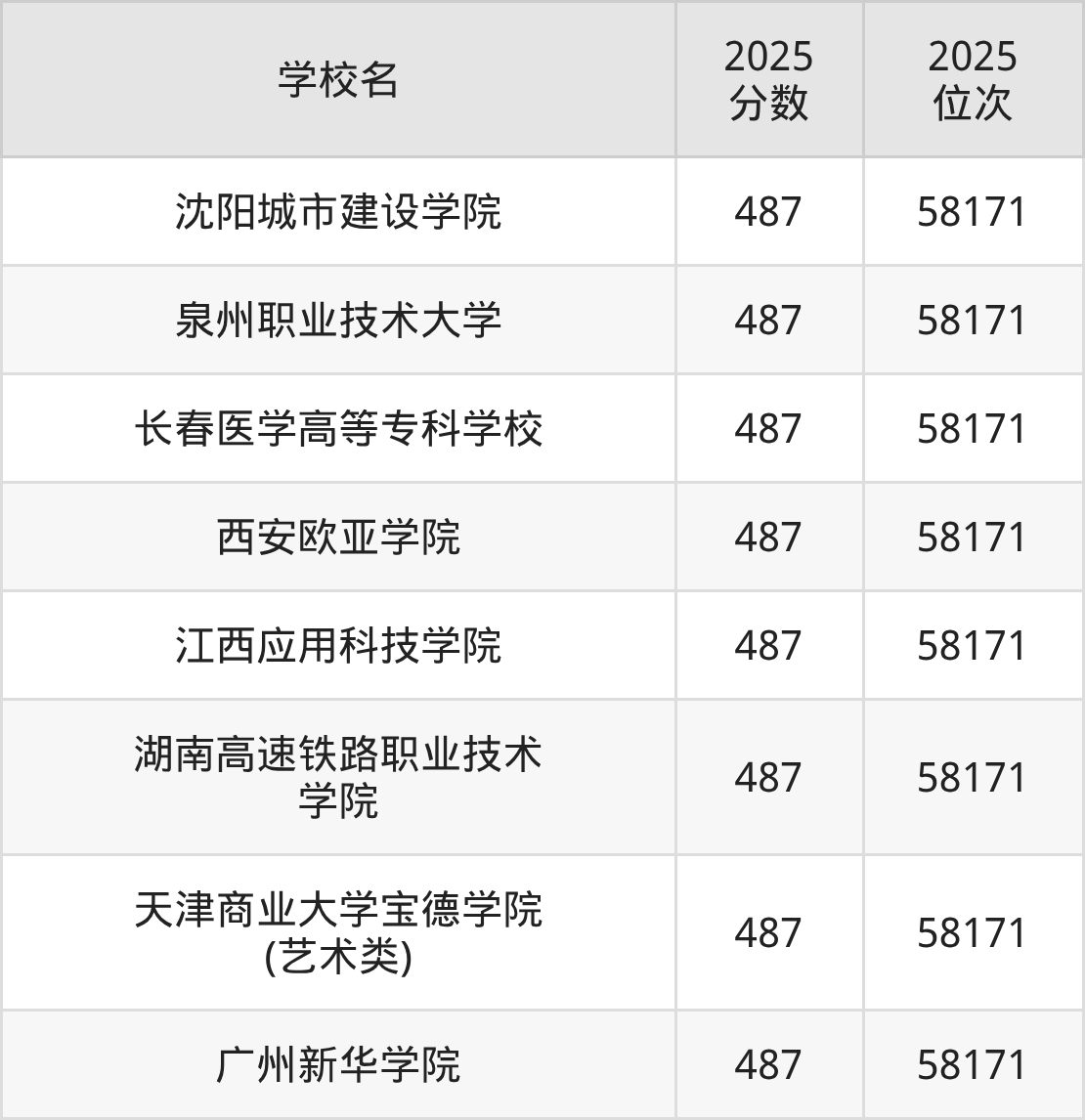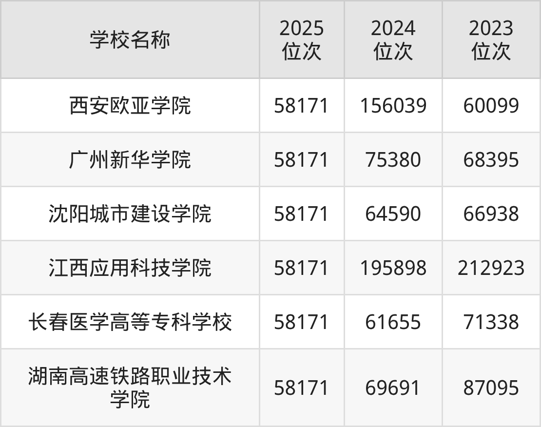 保底的大学:是从“较稳妥”院校中筛选近三年最低录取位次均稳定在58000名之后的院校,录取安全性高,可规避滑档风险。包含西安欧亚学院、广州新华学院、沈阳城市建设学院、江西应用科技学院、长春医学高等专科学校。