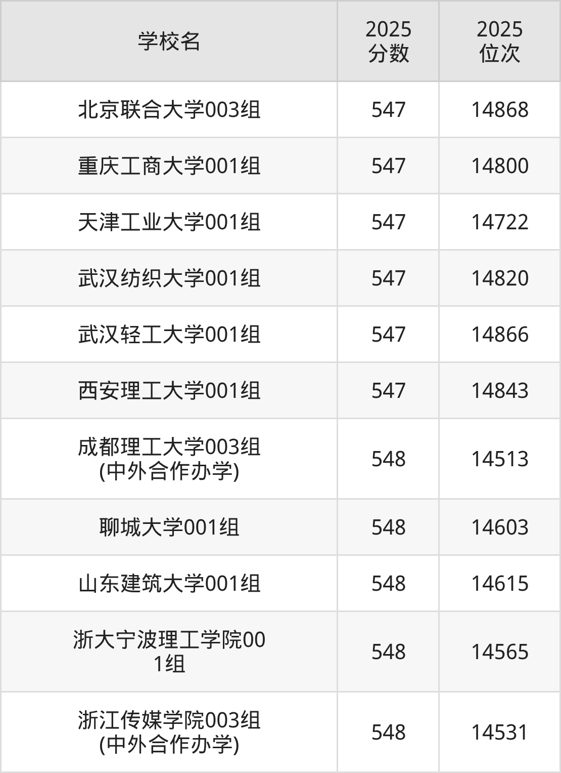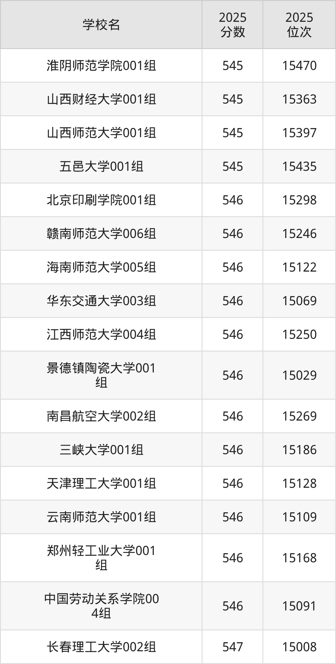 | 学校名 | 2025 分数 | 2025 位次 |