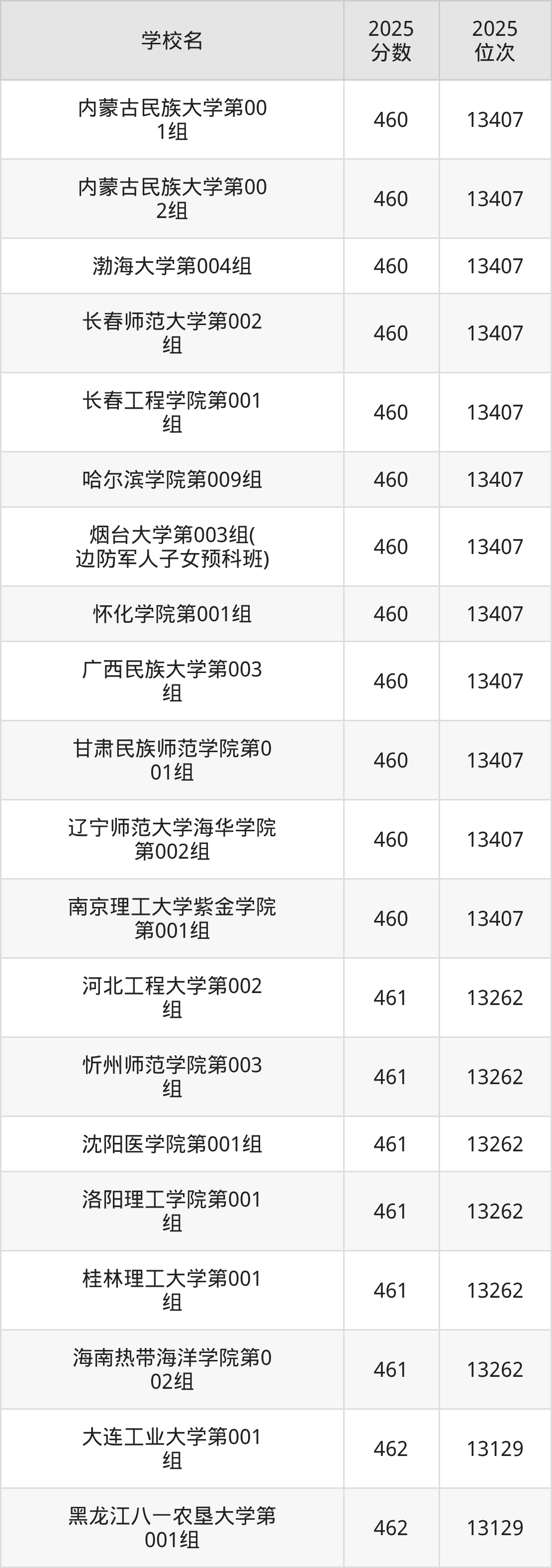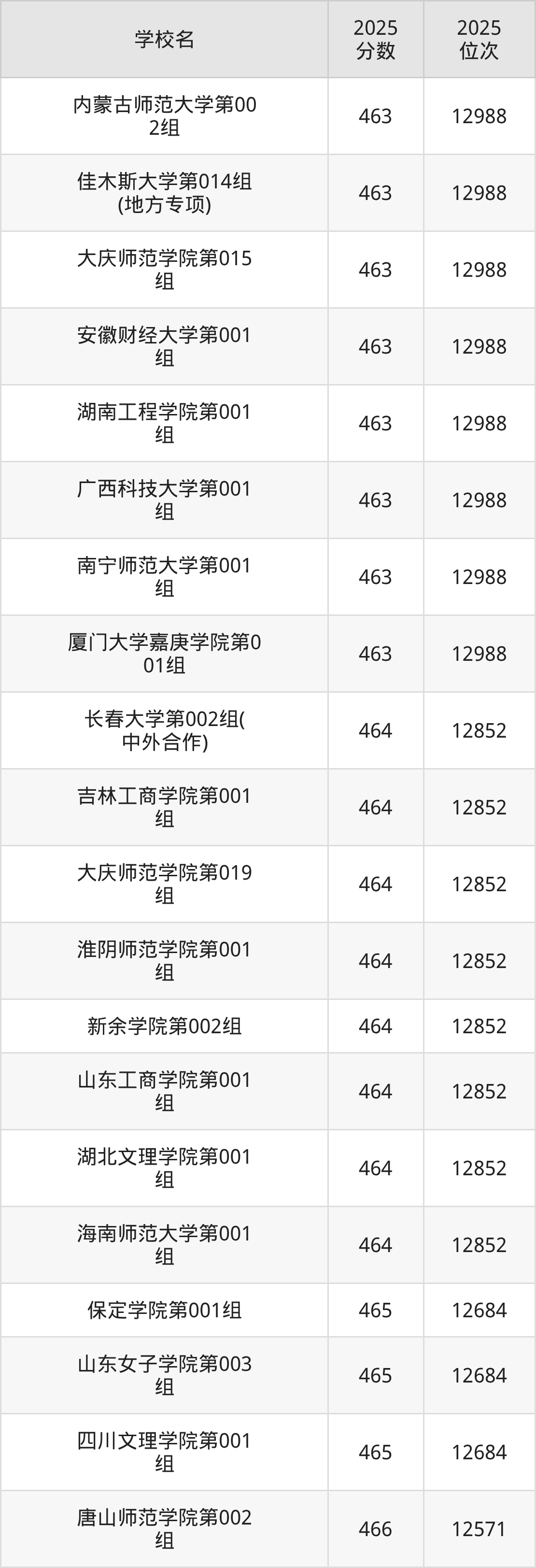 | 学校名 | 2025 分数 | 2025 位次 |