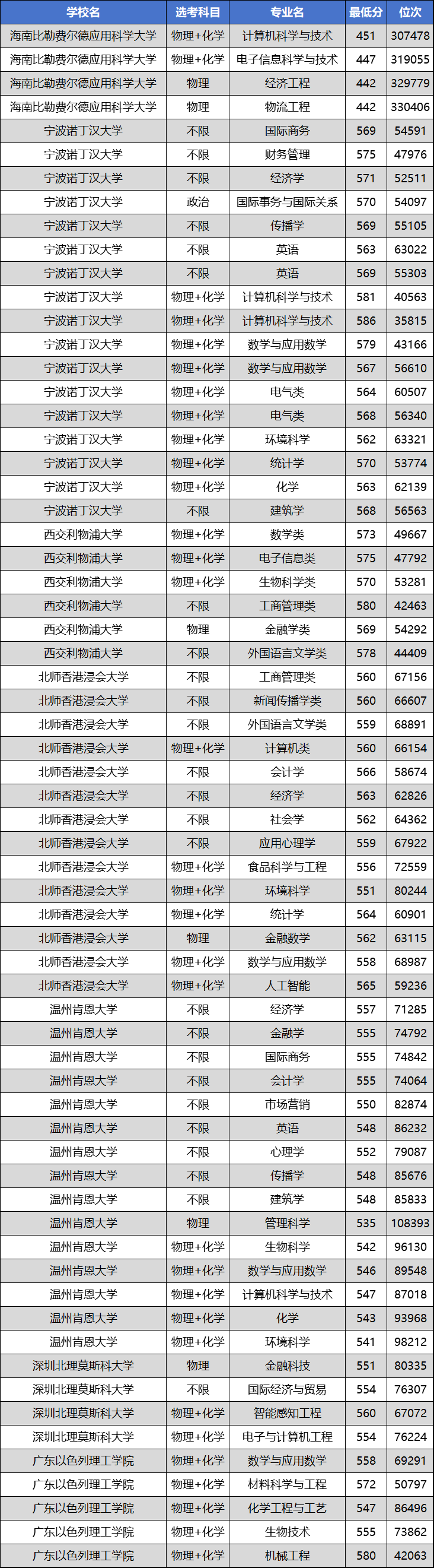 2.中分段考生(550—570分)可关注北师香港浸会大学、深圳北理莫斯科大学的相关专业。