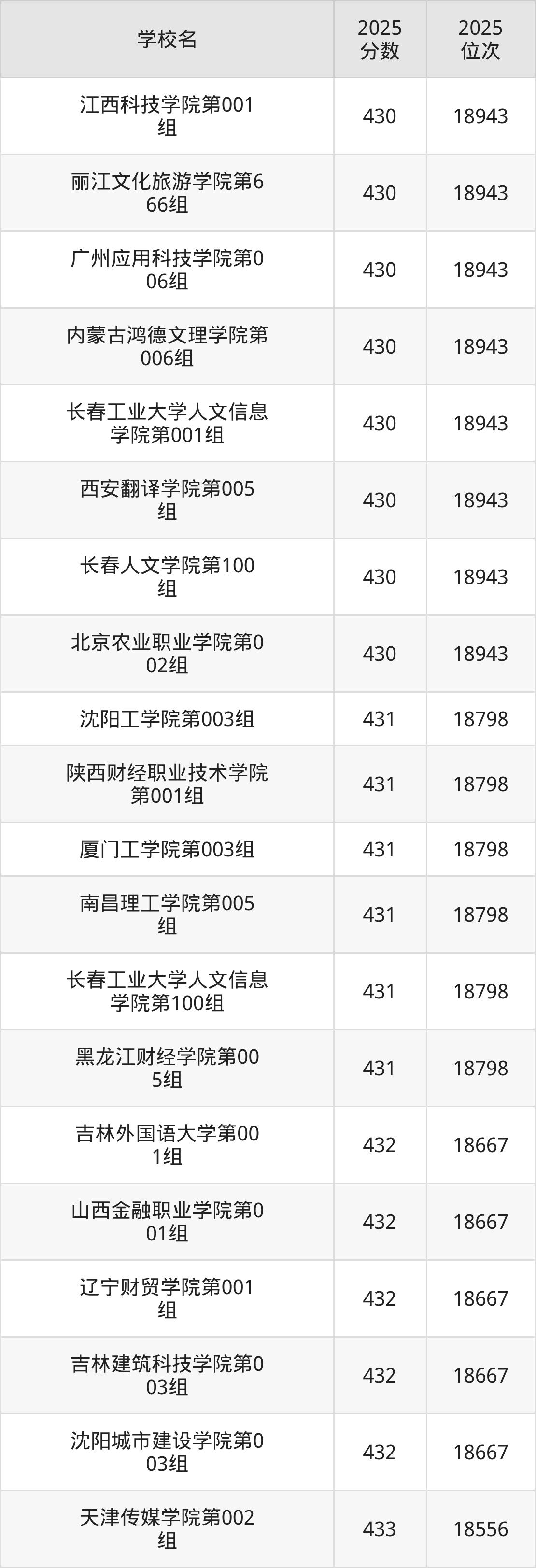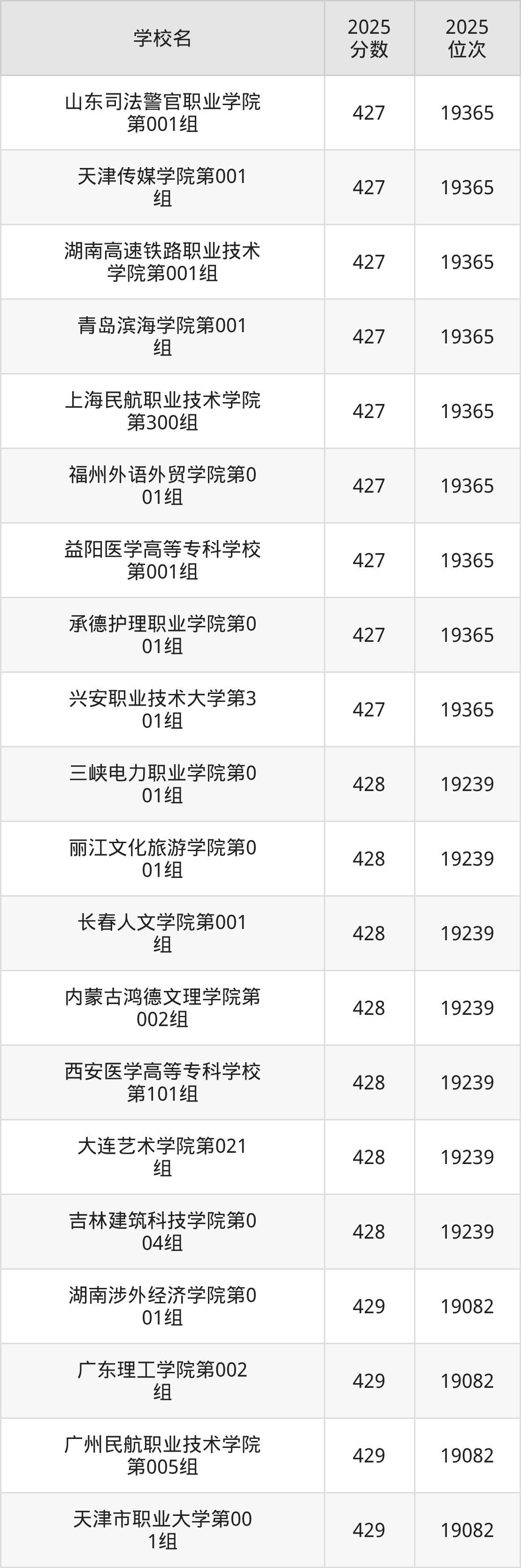 | 学校名 | 2025 分数 | 2025 位次 |