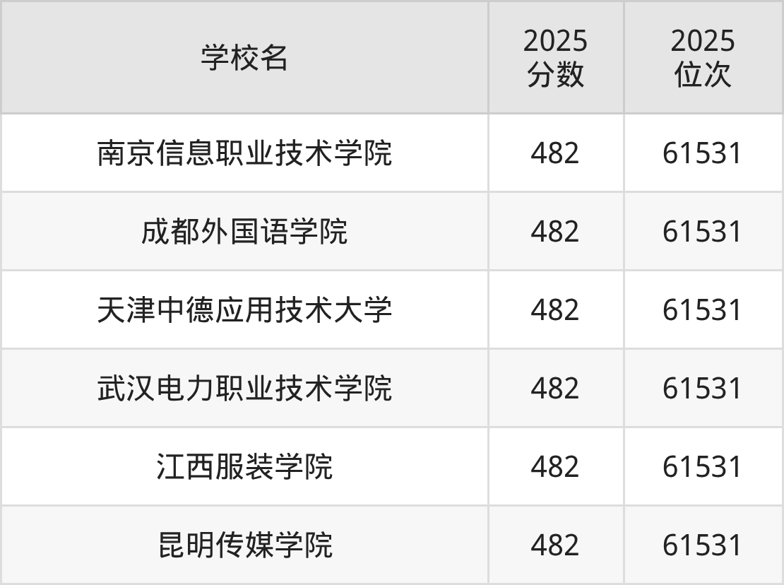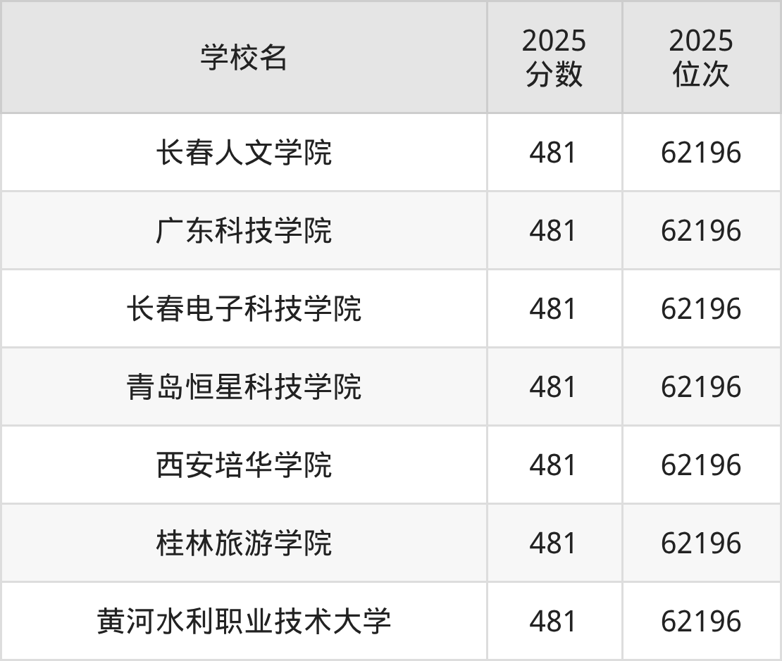 | 学校名 | 2025 分数 | 2025 位次 |