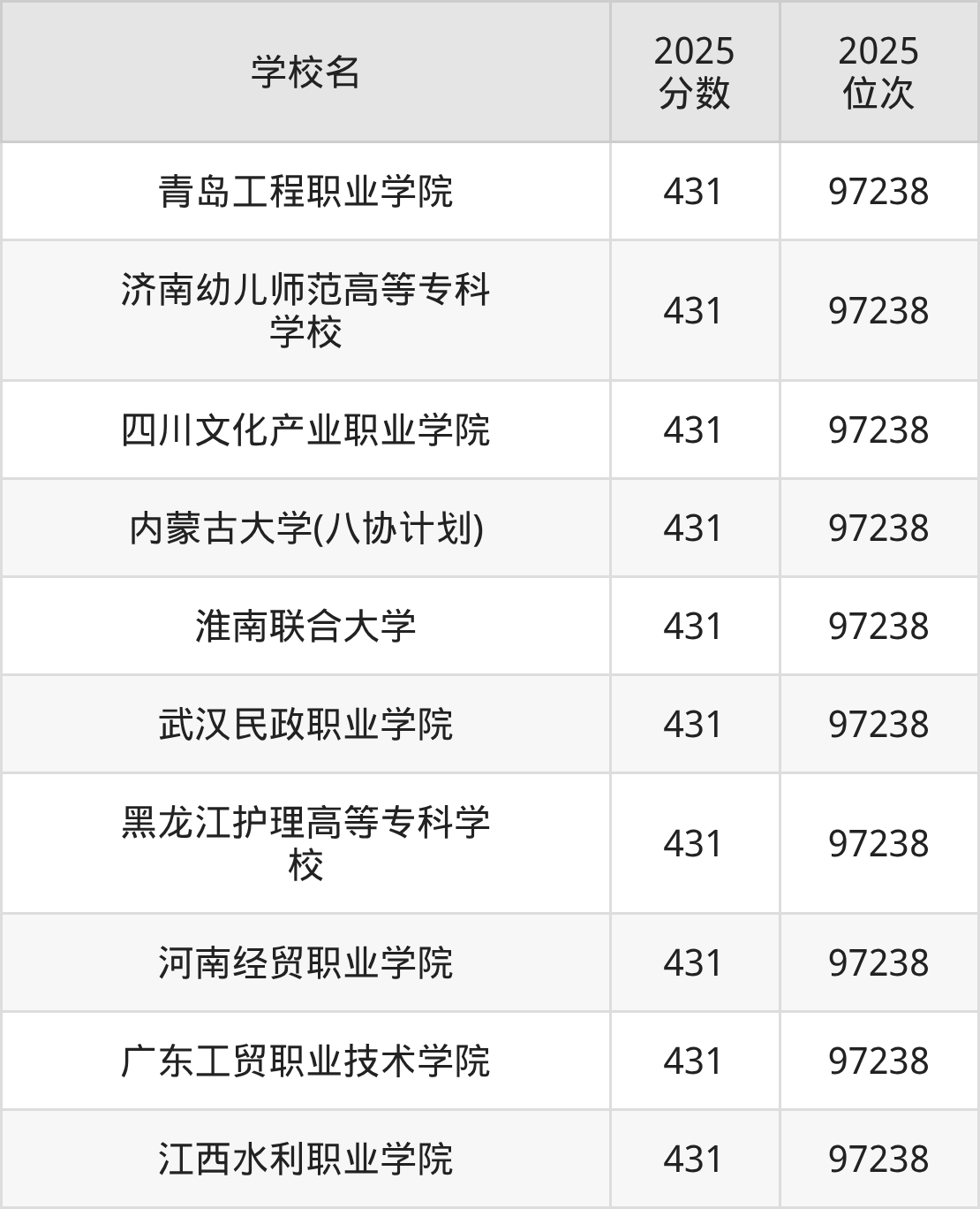 | 学校名 | 2025 分数 | 2025 位次 |