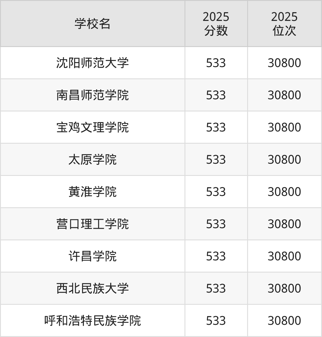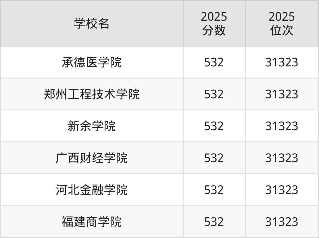 | 学校名 | 2025 分数 | 2025 位次 |