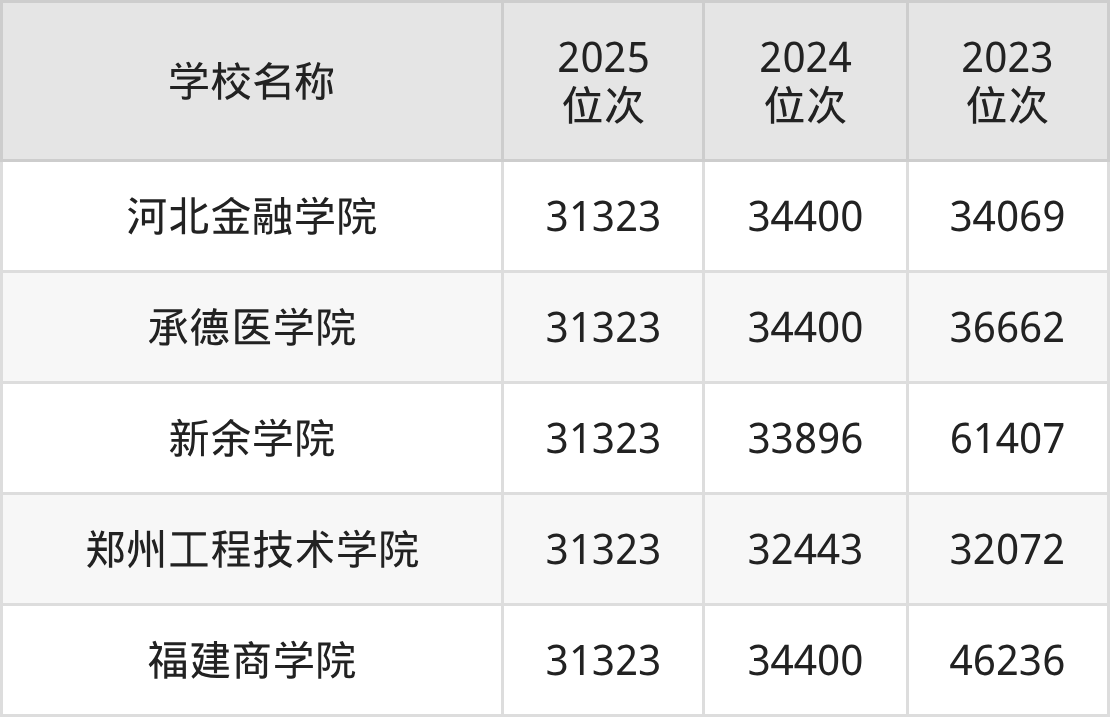 保底的大学:是从“较稳妥”院校中筛选近三年最低录取位次均稳定在31000名之后的院校,录取安全性高,可规避滑档风险。包含河北金融学院、承德医学院、新余学院、郑州工程技术学院、福建商学院。