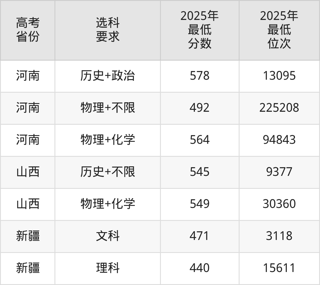 在2025年黑龙江高考物理类招生时,211收分最低的是郑州大学第003组,最低分是389分、位次是74217位。再看黑龙江大学,2025年在黑龙江物理类的最低录取分数线是449分,最低位次是50394位。