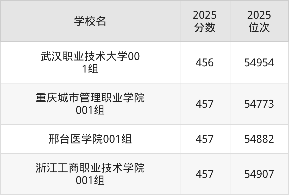 | 学校名 | 2025 分数 | 2025 位次 |