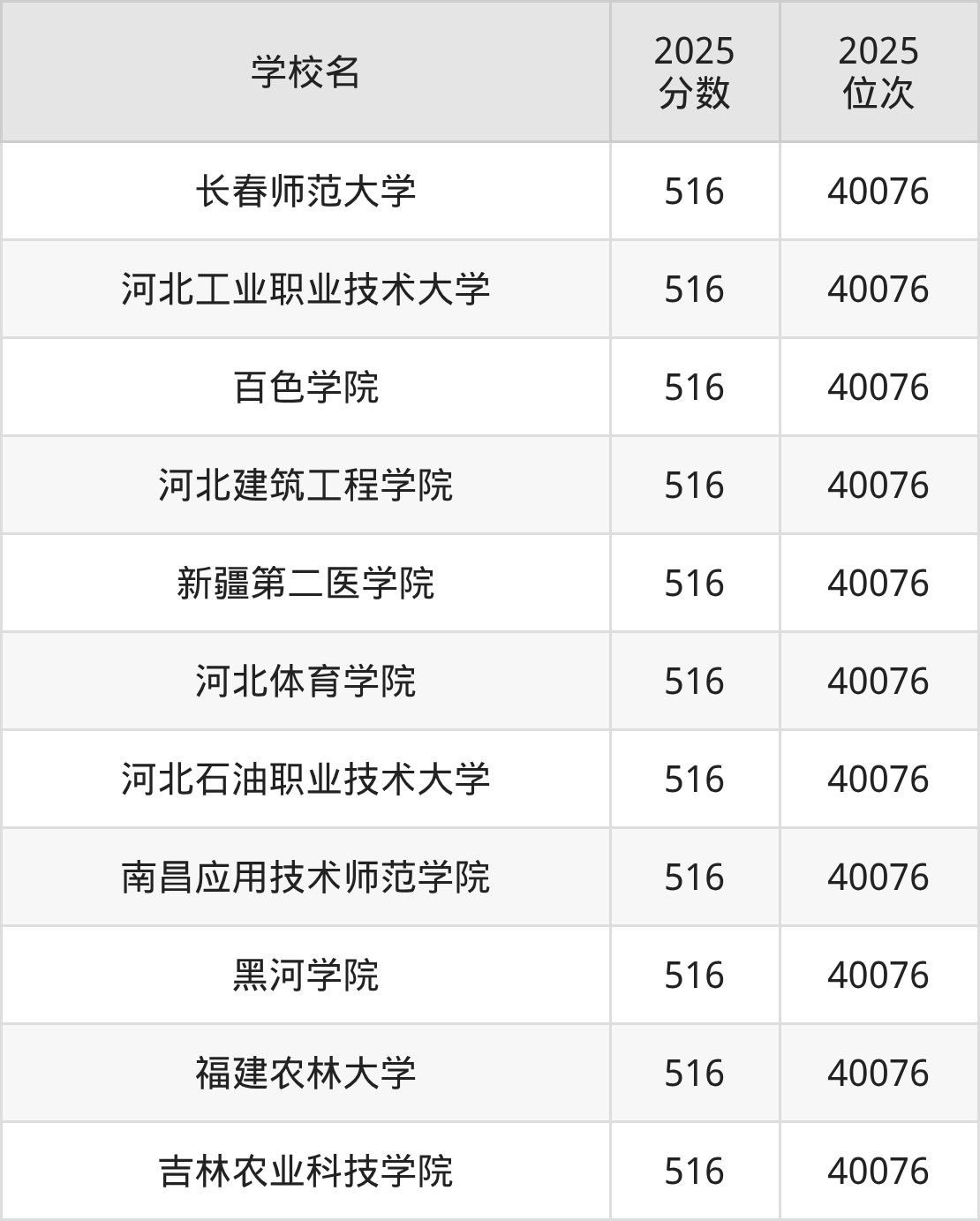 长春师范大学:2025年的最低分位次是40076名,2024年是40437名,2023年是59473名。招生专业包含:小学教育、汉语言文学、俄语、德语、学前教育、旅游管理。