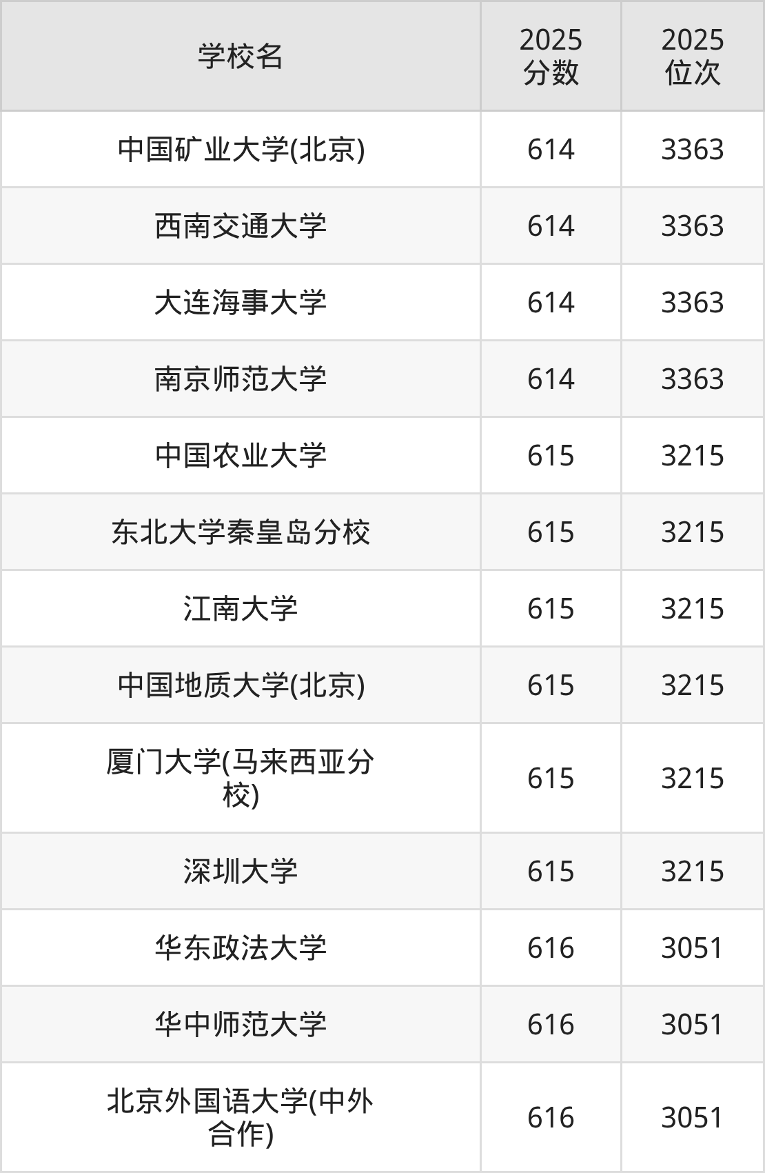 大连海事大学:2025年的最低分位次是3363名,2024年是3124名,2023年是4183名。招生专业包含:经济学类、法学、工商管理类、交通管理。
