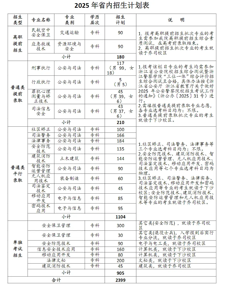 三、浙江警官职业学院2025年招生计划