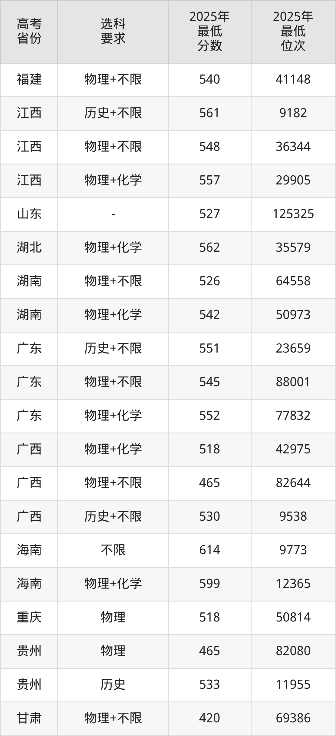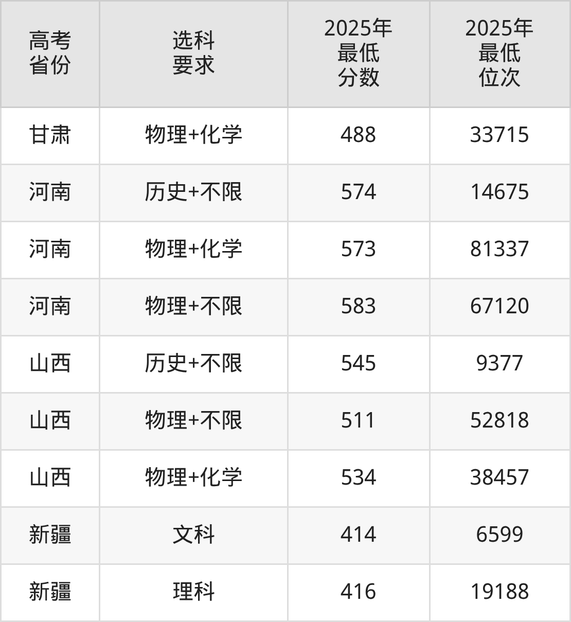 (2)机械工程,最低分是498,录取位次是24798,学费是7000元一年。