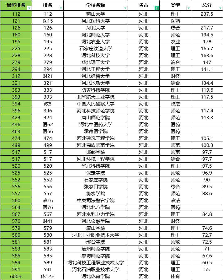 一、2024河北省大学全部排名