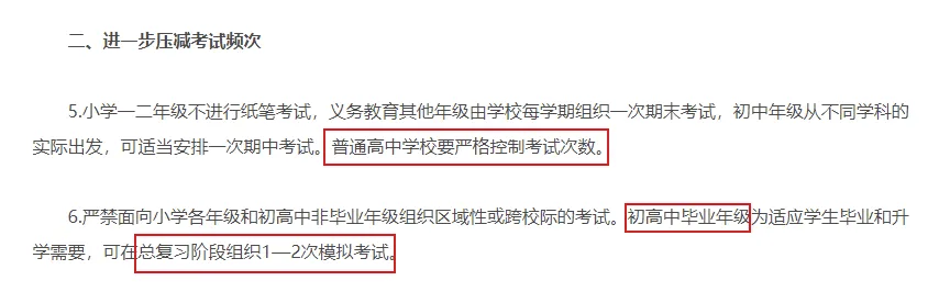2.新政要求“毕业班全市统一考试不超过2次”