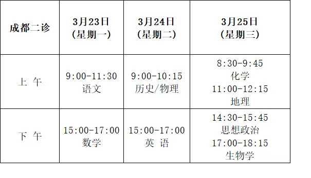 一、2026四川成都高三二诊考试时间及安排表