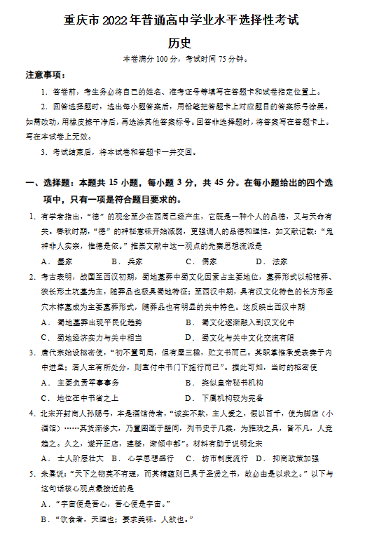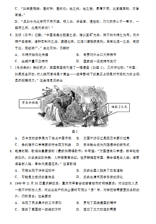 二、2024年重庆高考历史真题试卷