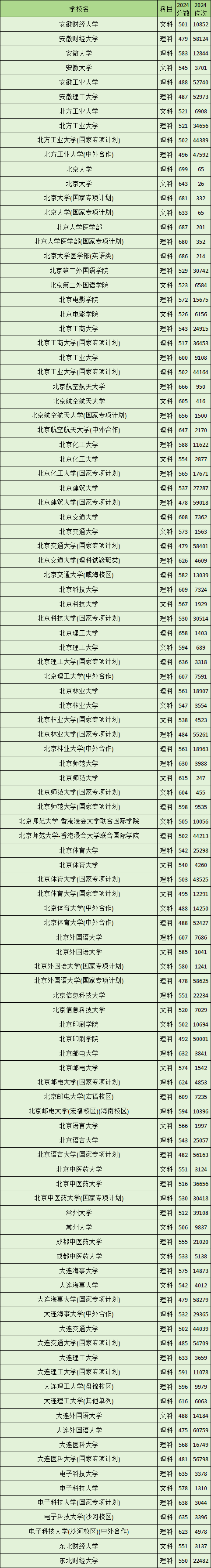导语:本文整理了陕西2024年一本大学录取分数线,供2025届考生参考。其中,在2024年陕西高考中,安徽财经大学文科投档线为501分;理科投档线为479分。安徽大学理科投档线为583分;文科投档线为545分。