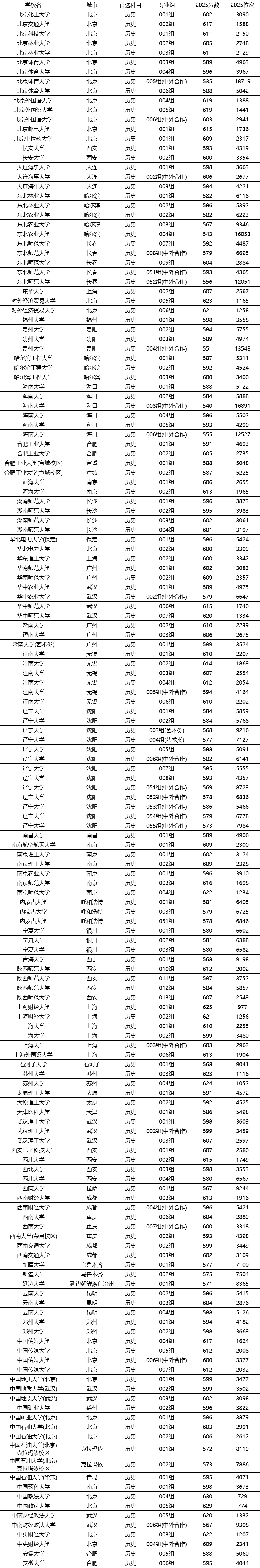 提示:历史类考生若希望稳妥录取211高校,目标分数建议设定在580分以上,位次尽量控制在6000位以内。