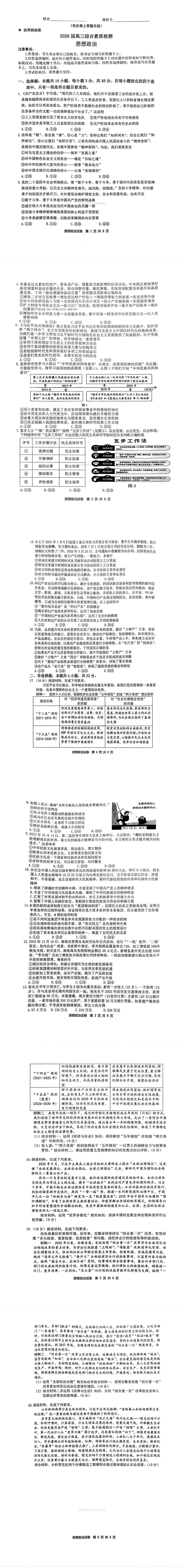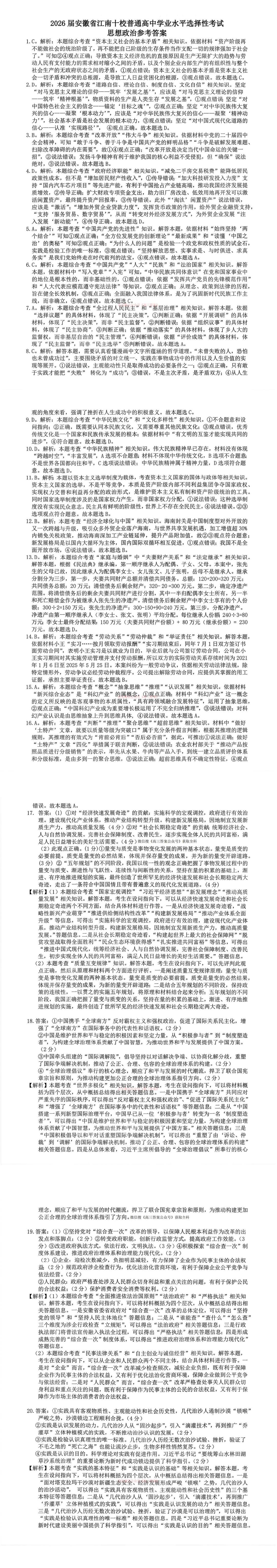 八、2026安徽江南十校高三开学考政治试卷及答案