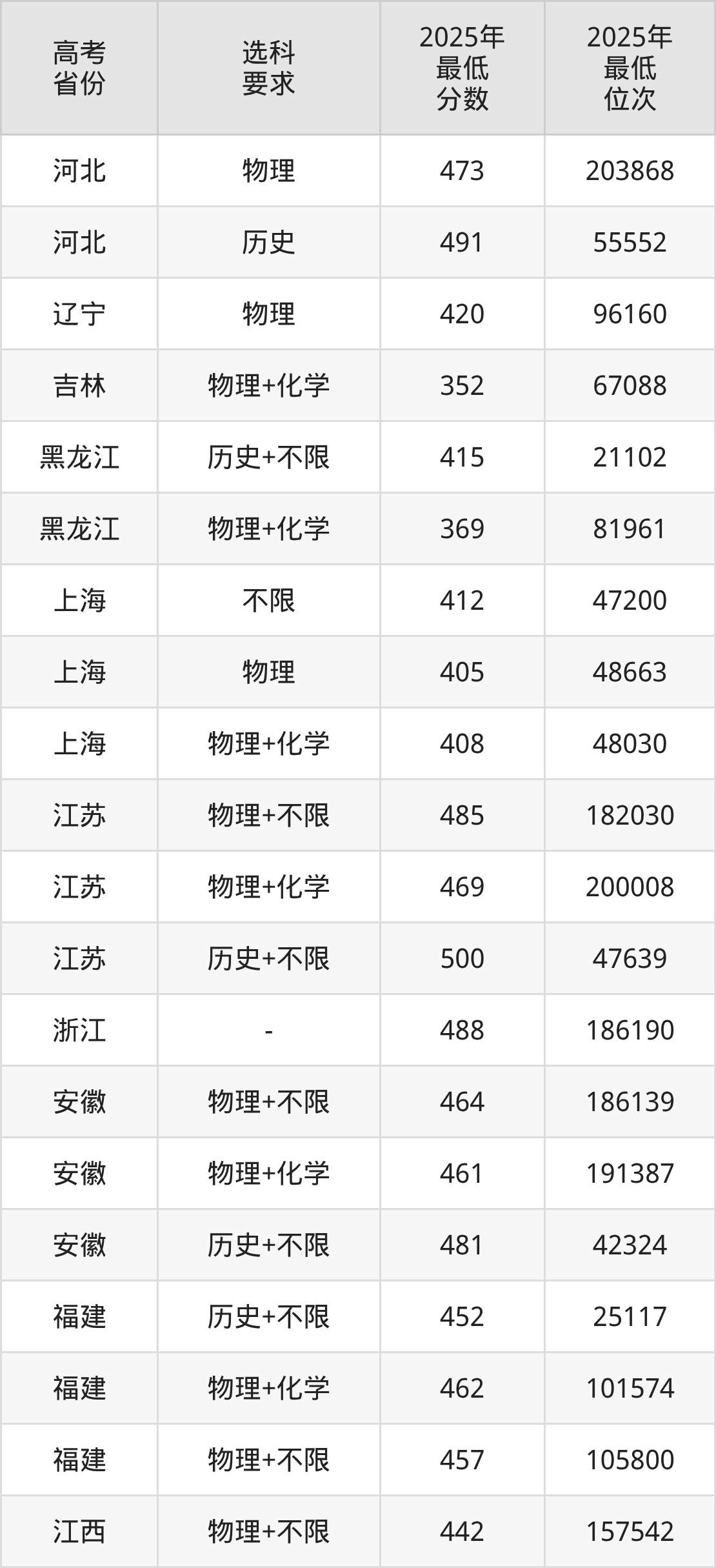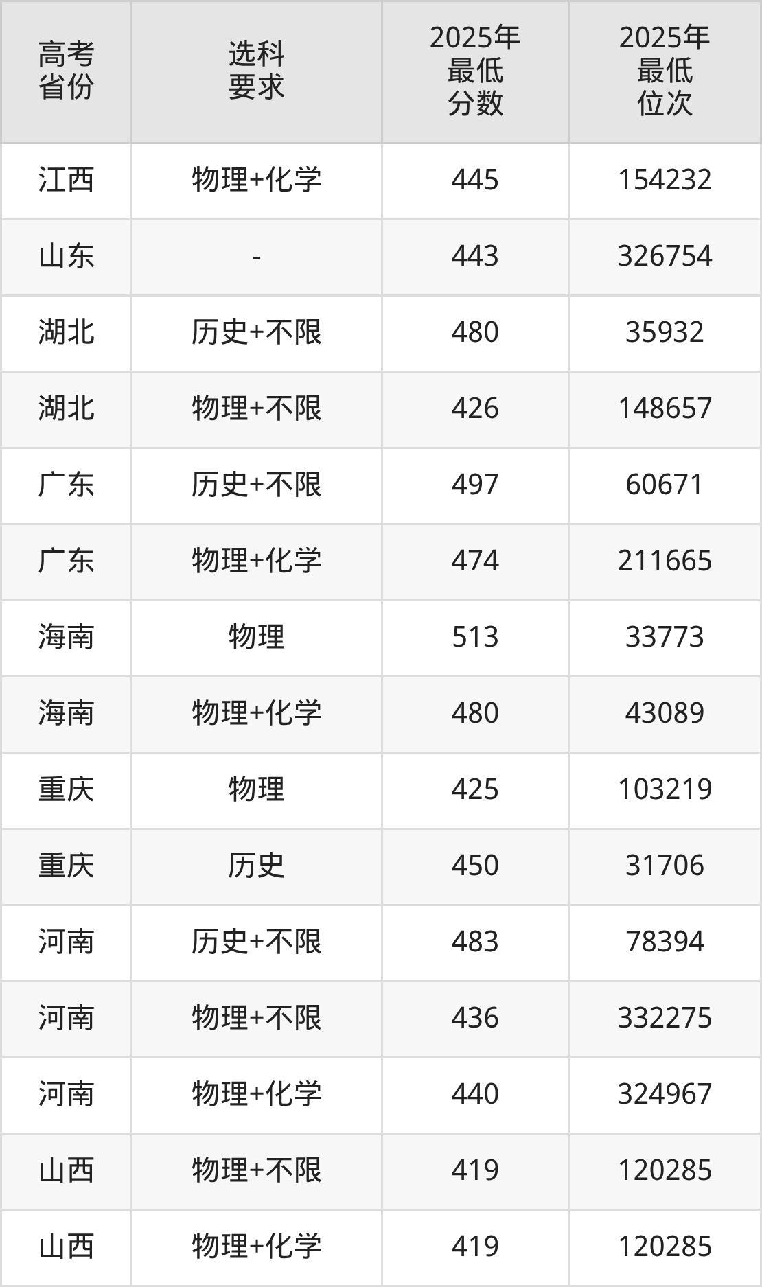 在2025年安徽高考物理类招生时,公办本科收分最低的是乌鲁木齐职业大学003组,最低分是239分、位次是318674位。再看合肥城市学院,2025年在安徽物理类的最低录取分数线是461分,最低位次是191387位。