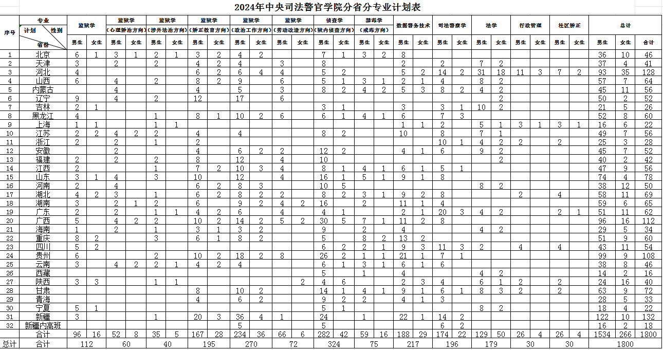 监狱学(政治工作方向),无选科要求,2024年招生10人;