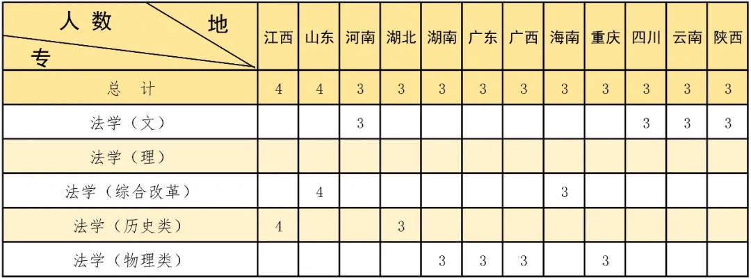 4、新疆计划中含新疆高中班计划 7 人。其中:男生 6 人,具体为治安学(文)1 人、治安学(理)1 人、侦查学(文)1 人、侦查学(理)1 人、刑事科学技术(理)2 人;女生 1 人,具体为侦查学(理)1 人。