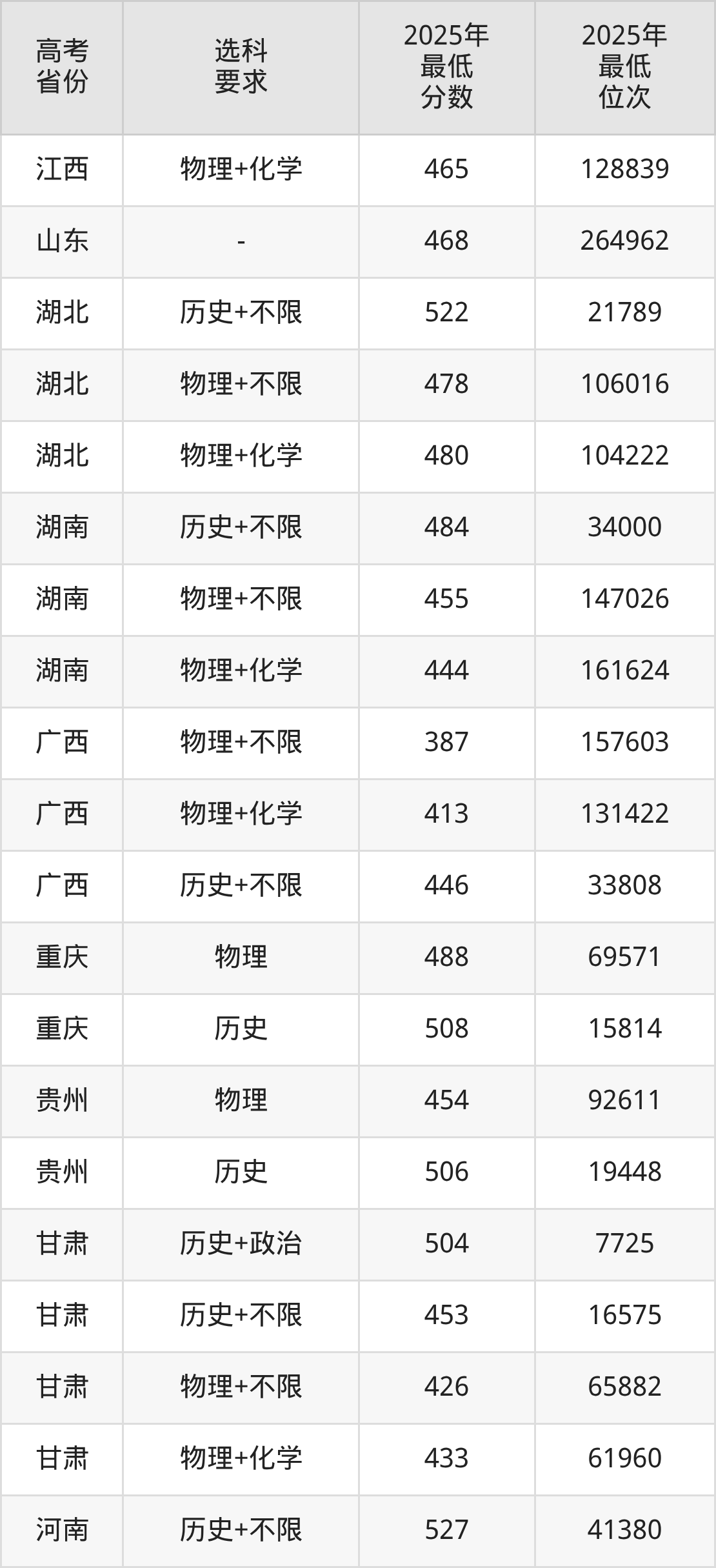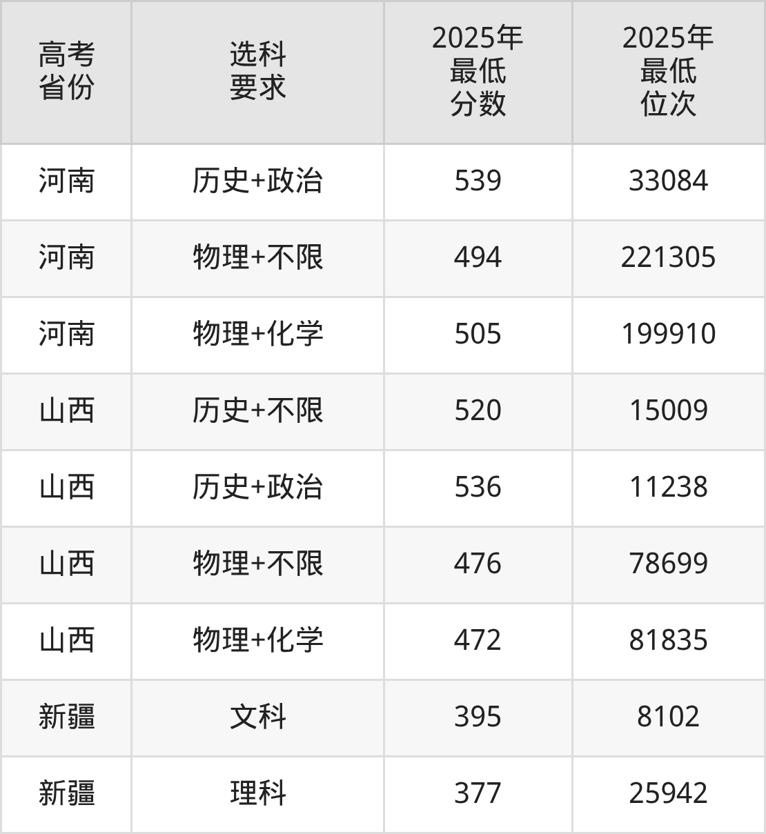 在2025年新疆高考理科招生时,211收分最低的是四川农业大学,最低分是421分、位次是18415位。再看陕西学前师范学院,2025年在新疆理科的最低录取分数线是377分,最低位次是25942位。