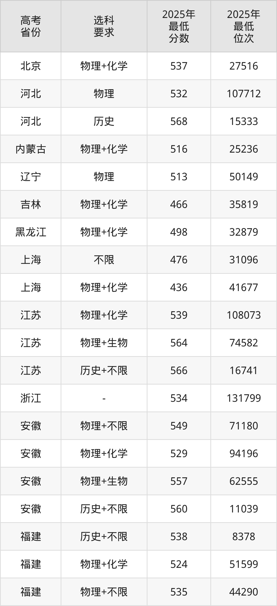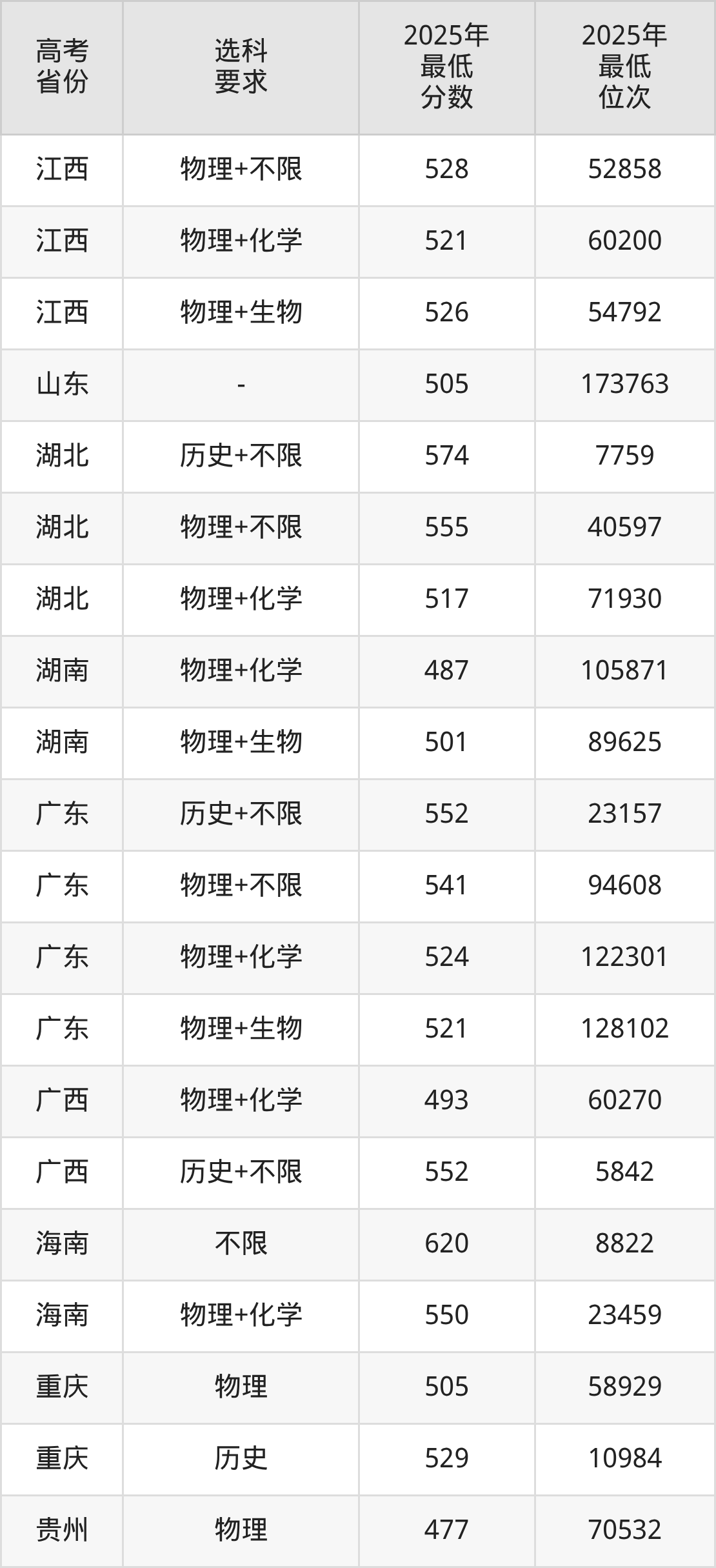 在2025年安徽高考物理类招生时,211收分最低的是贵州大学051组(中外合作办学),最低分是515分、位次是113446位。再看安徽农业大学,2025年在安徽物理类的最低录取分数线是529分,最低位次是94196位。