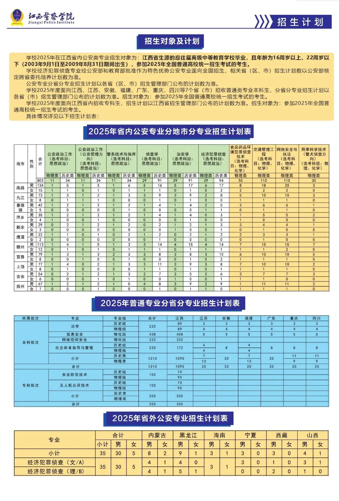 户籍要求: 公安类专业仅面向江西省内户籍考生招生,外省户籍考生无法报考(省外计划仅限特定省份)。