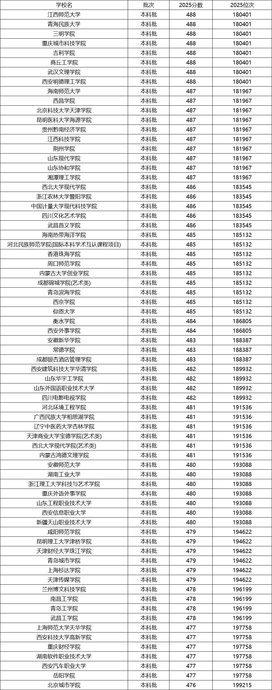 在河北高考位次排名在18万-20万名的考生,可以选择一些双万计划的本科大学。根据2025年河北录取分数线,18万-20万名的考生的分数大学在476分至488分之间,能够报考的高校包括四川文化艺术学院、武昌首义学院、海南热带海洋学院、河北民族师范学院等。