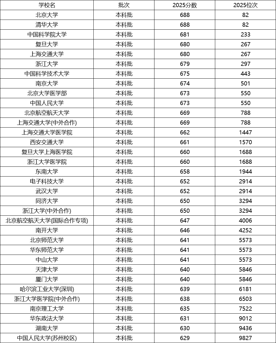 导语:本文根据河北2025年各高校录取数据,详细介绍了不同分数及位次对应的大学名单,供2026年考生参考。例如,河北高考位次前1万名的考生可选择的高校包括上海交通大学医学院、西安交通大学、复旦大学上海医学院、浙江大学医学院等。