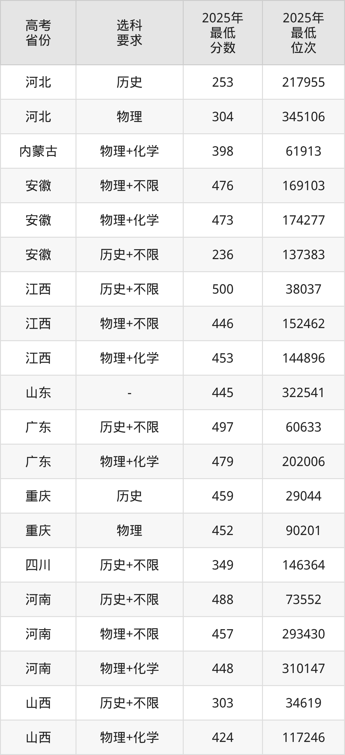 在2025年四川高考物理类招生时,公办本科收分最低的是河北科技工程职业技术大学专业组101,最低分是150分、位次是284789位。再看四川文化艺术学院,2025年在四川物理类的最低录取分数线是442分,最低位次是202781位。