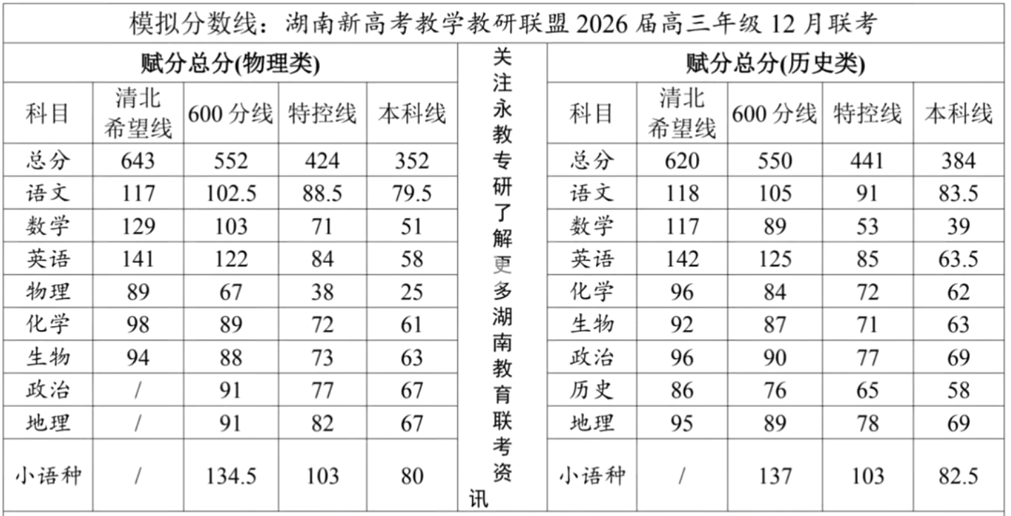 2026年湖南新高考长郡二十校联盟高三12月联考的总分分数线已正式发布。本次联考于12月1日至2日举行,涵盖长郡中学、永州四中、株洲二中、宁乡一中等多所名校。总分划线具体如下: