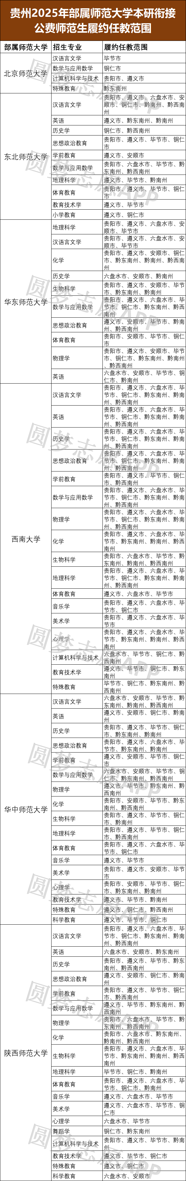 以下为2025年贵州国家公费师范生履约任教区域整理,2026届考生在选择院校和专业时可重点参考。
