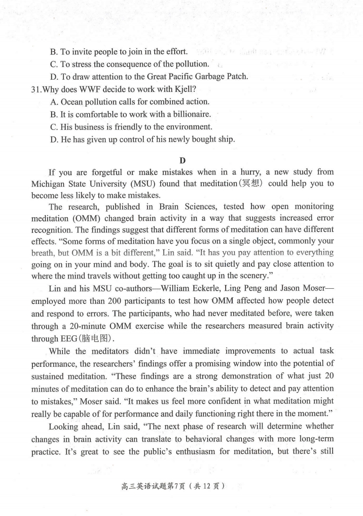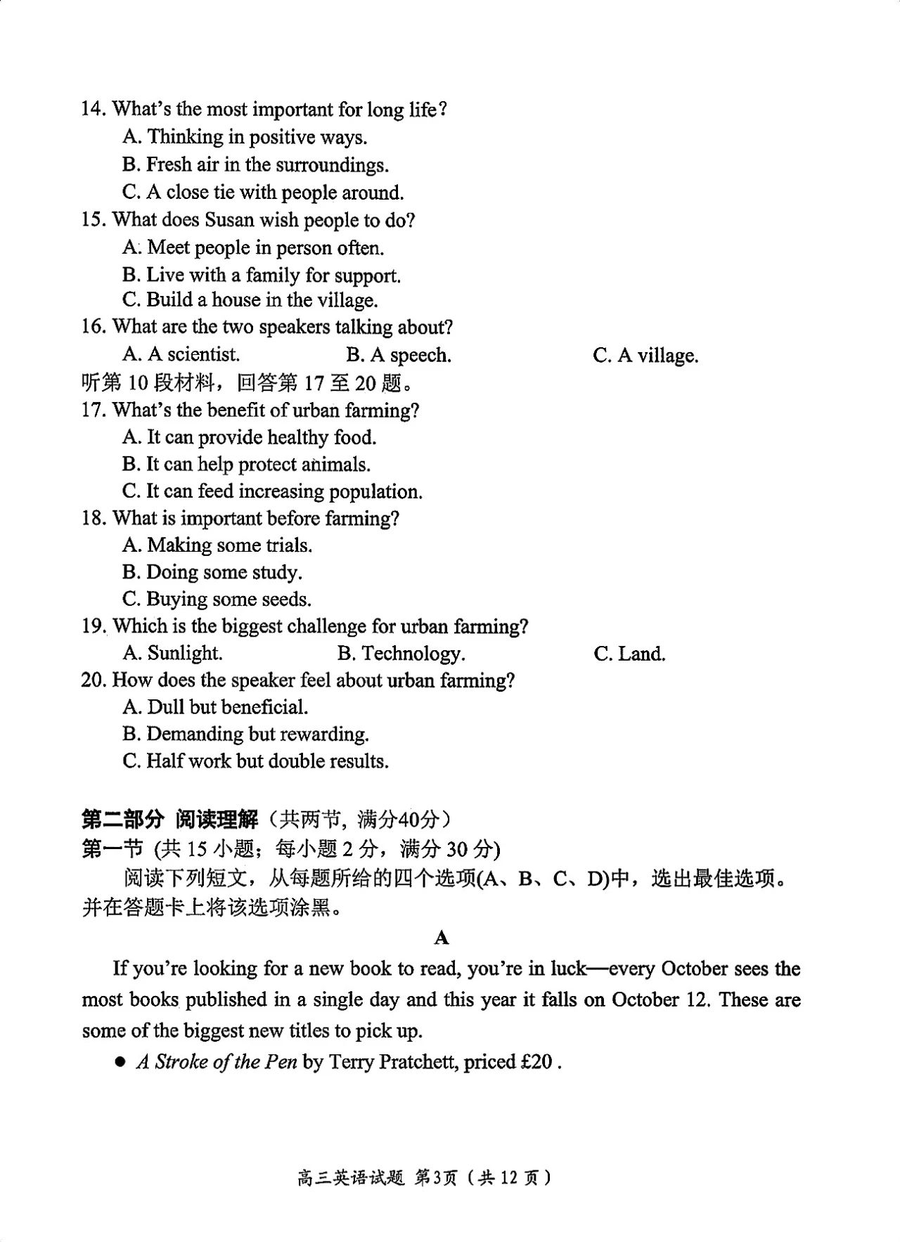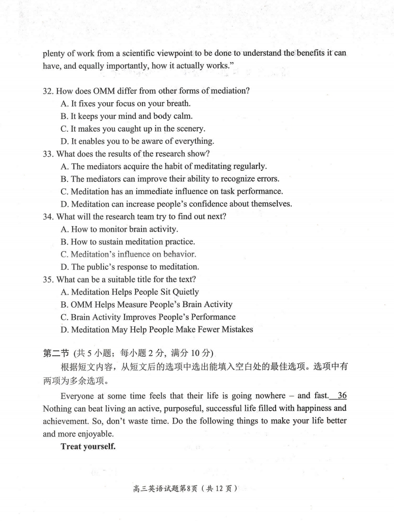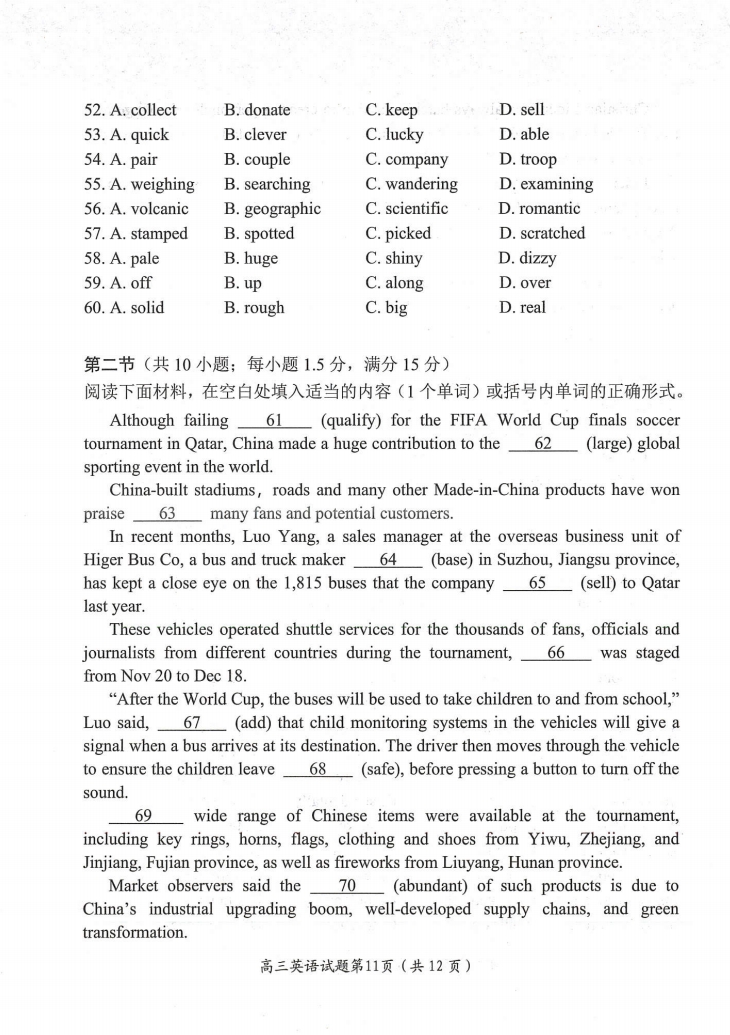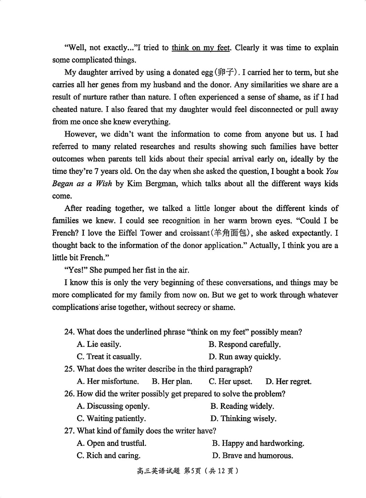 2026绵阳二诊英语试题及答案还未公布,以下是往年试题及答案!