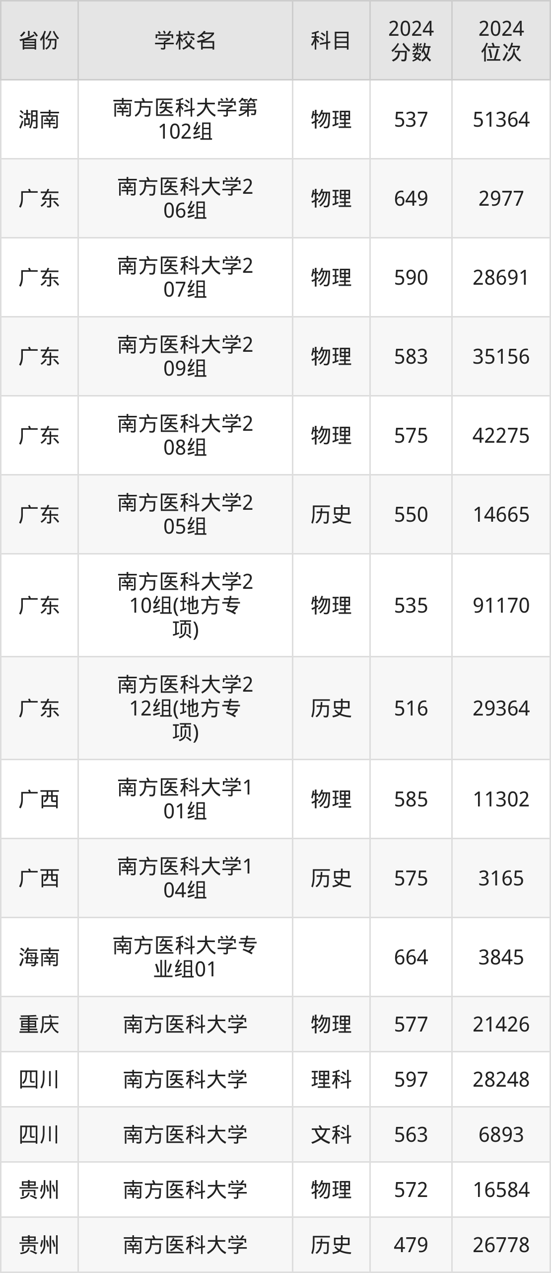 2024年南方医科大学在广东省内录取最低分数线是516分,录取最低的是历史类212组(地方专项);录取分数线最高是649分,对应的是物理类206组。