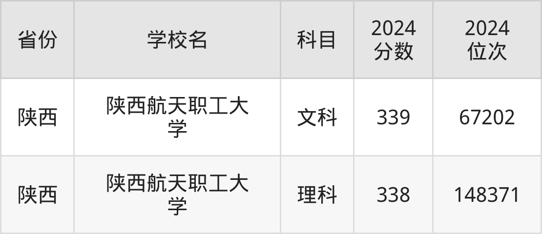 2024年陕西航天职工大学在陕西省内录取最低分数线是338分,录取最低的是理科;录取分数线最高是339分,对应的是文科。