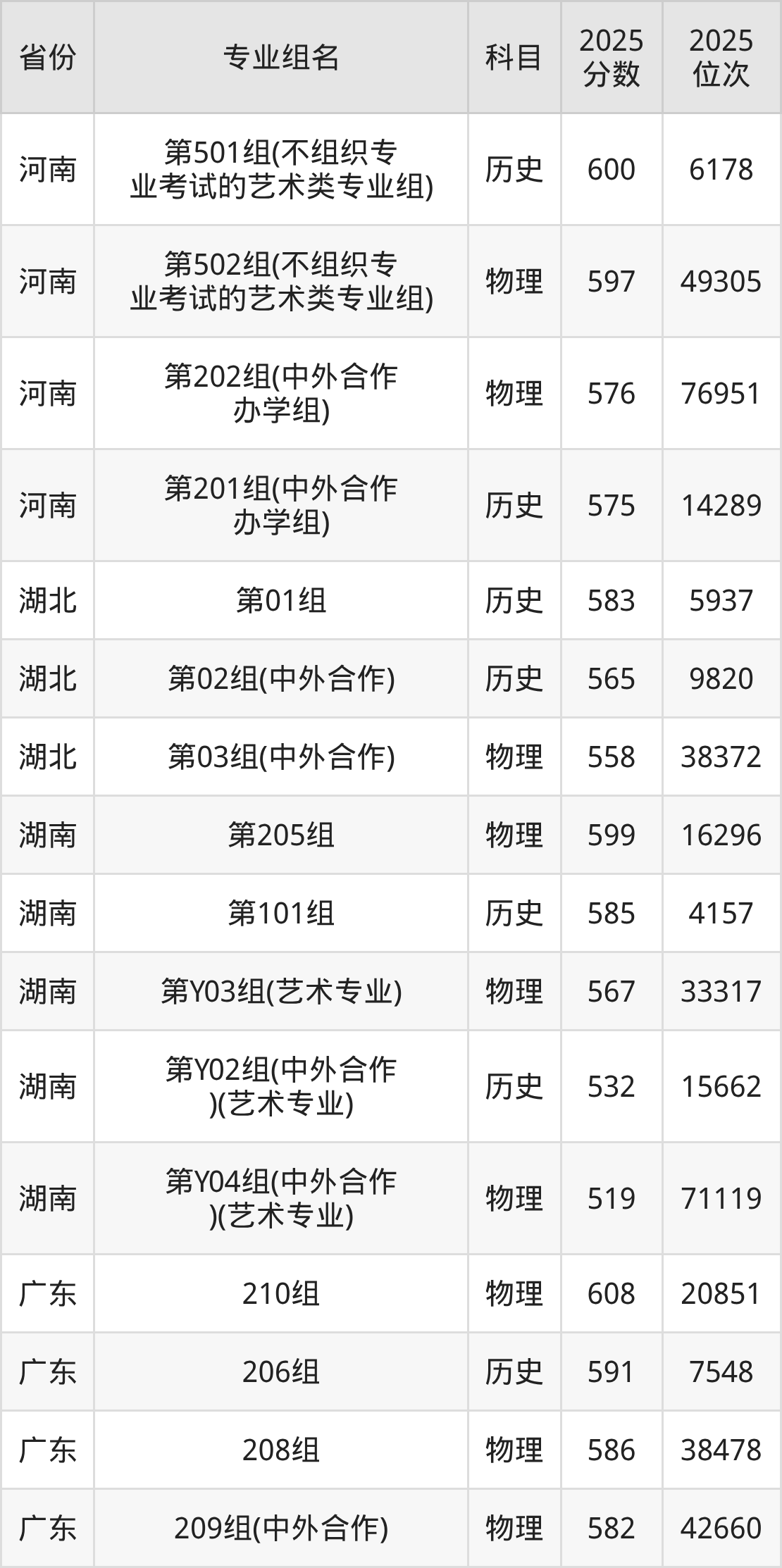 下面是中央美术学院2025年录取分数线一览表: