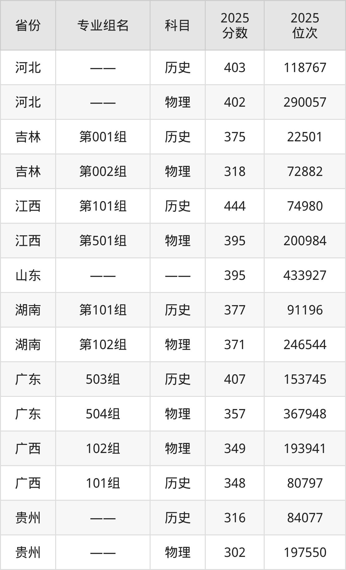 2025年湖南现代物流职业技术学院在湖南省内录取最低分数线是371分,录取最低的是物理类第102组;录取分数线最高是377分,对应的是历史类第101组。