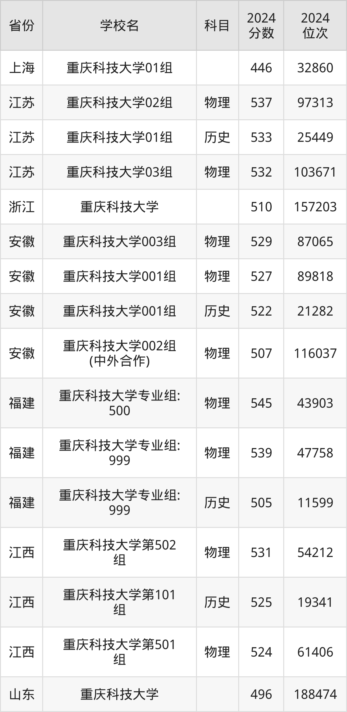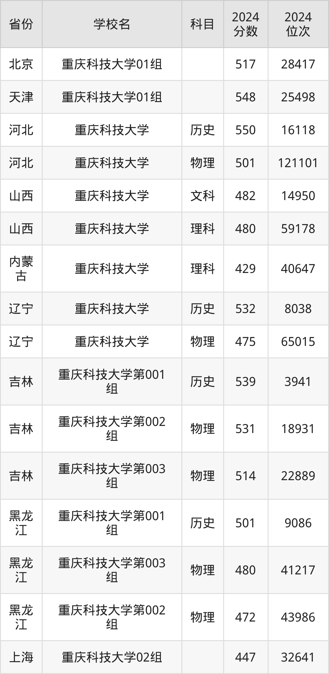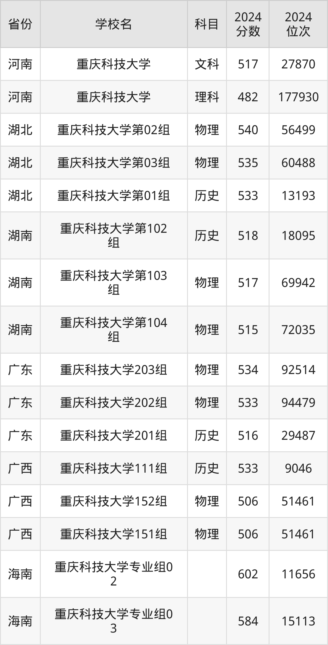 以2024年数据作为参考依据,整理重庆市内、市外考重庆科技大学要多少分。