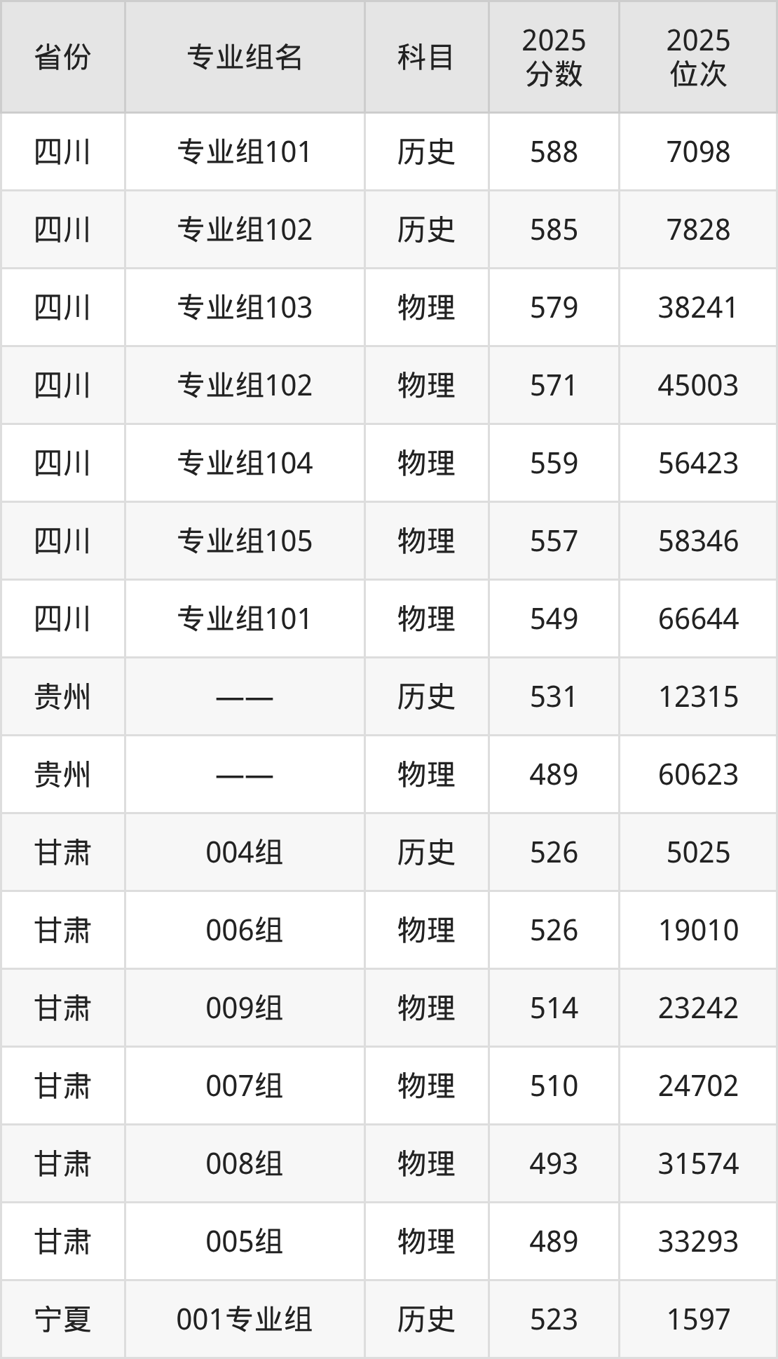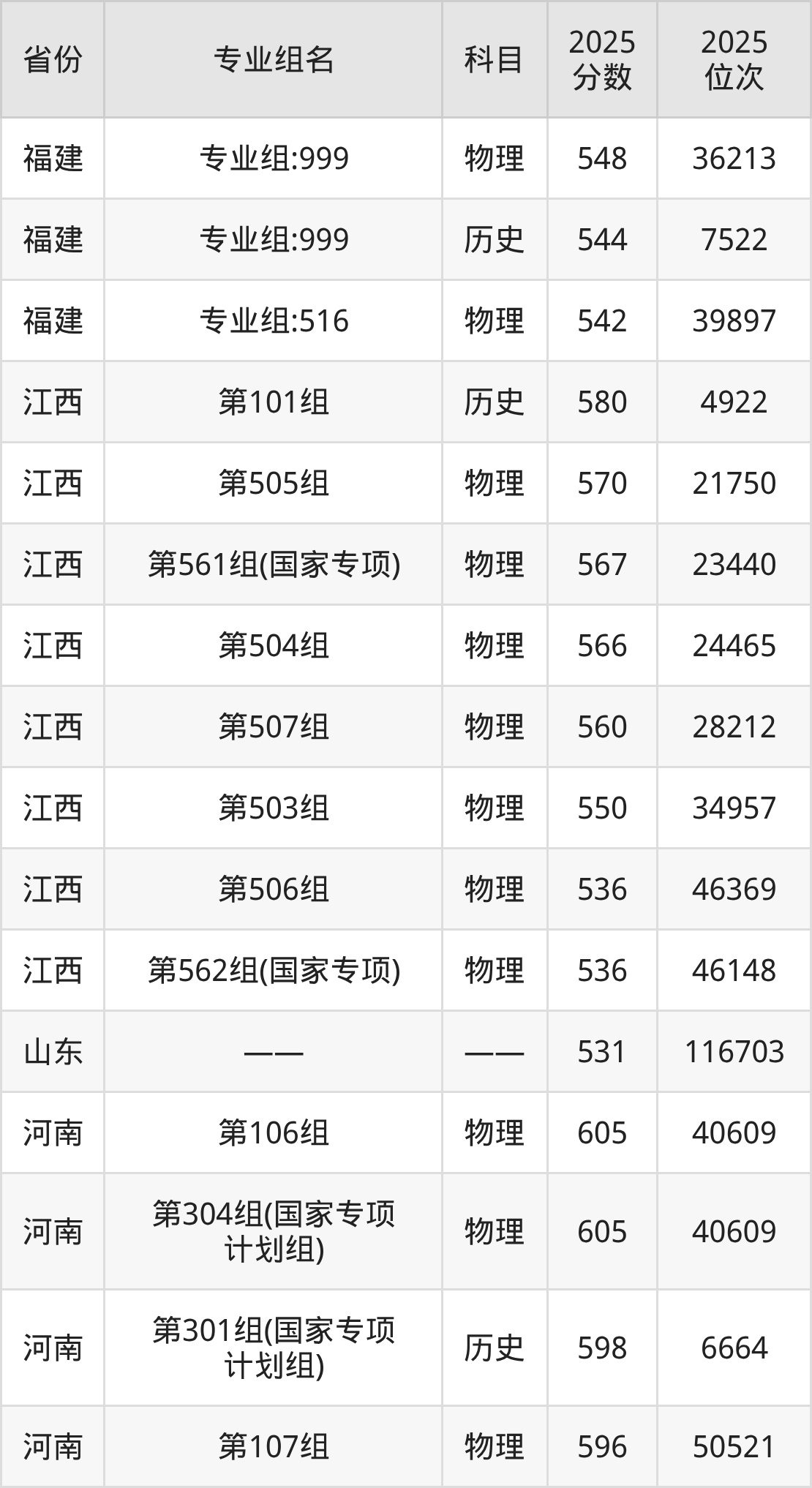 物理类:专业组:900 557分、专业组:500 549分、专业组:999 548分、专业组:516 542分。