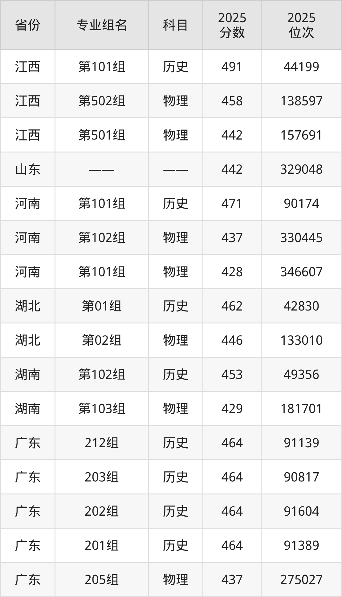 物理类:204组 442分、201组 442分、203组 442分、202组 442分、501组 392分。