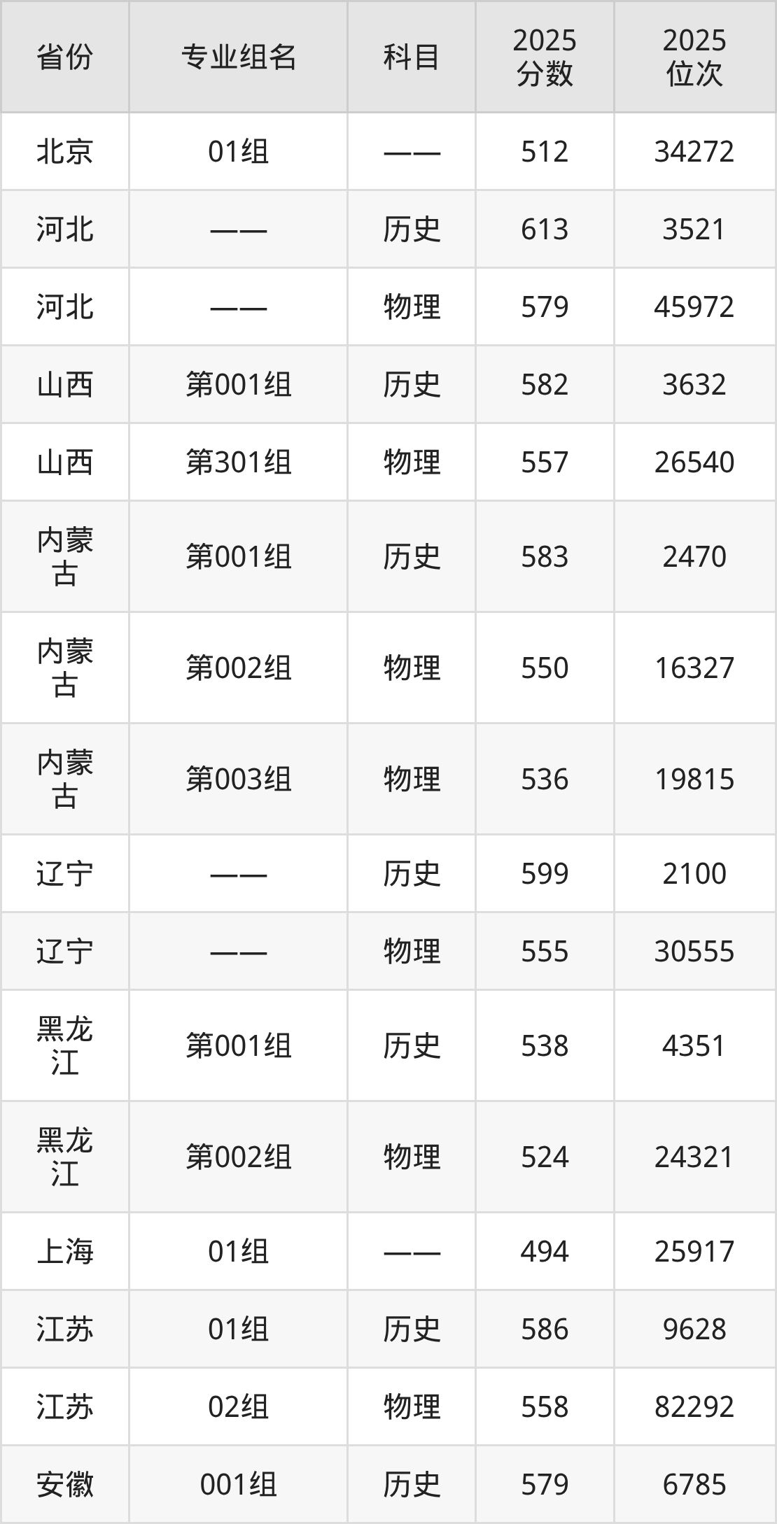 历史类:205组 535分、201组 534分、203组(联合培养) 521分。
