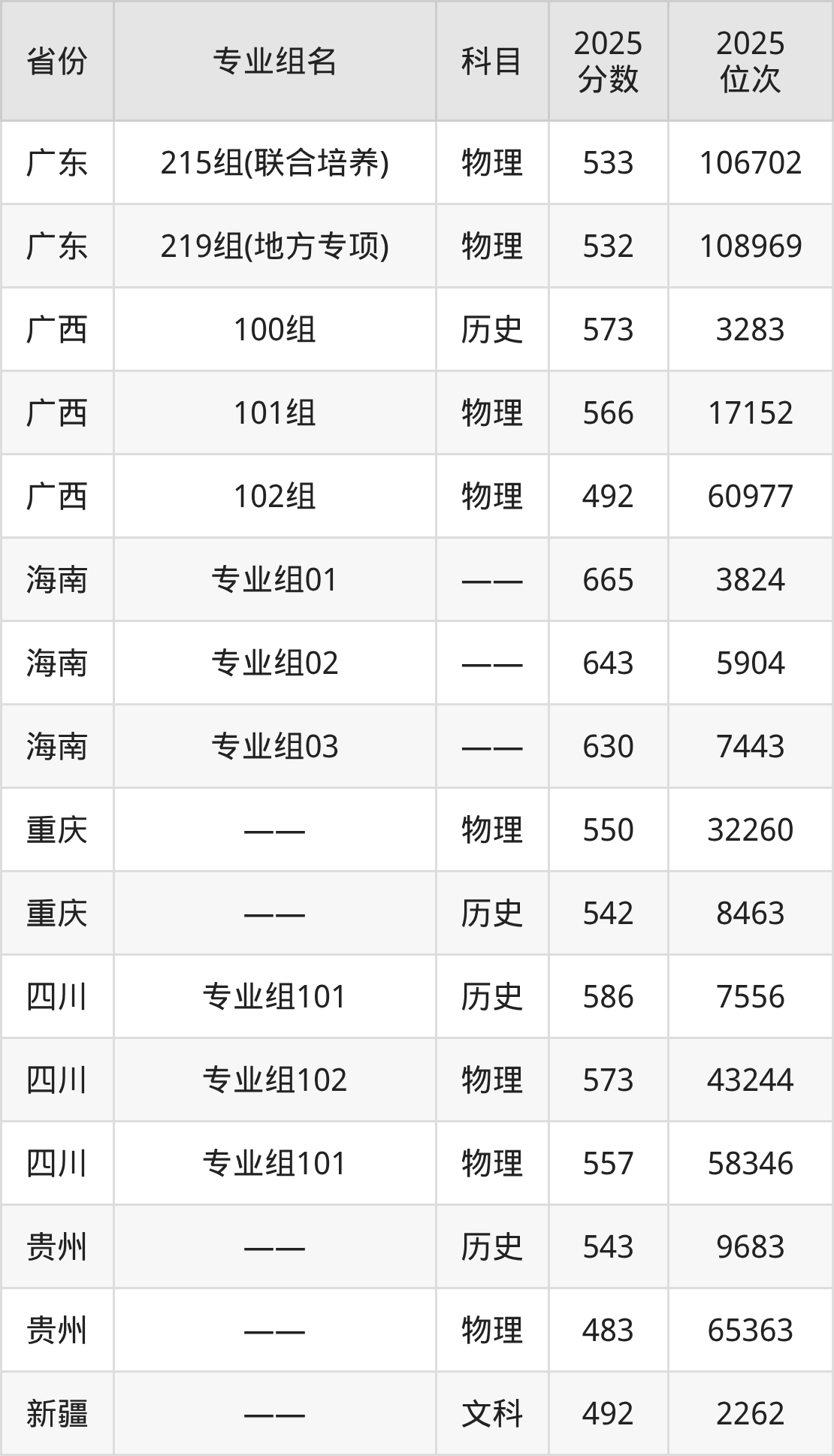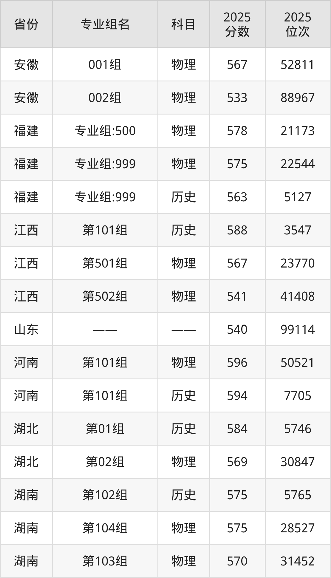 物理类:210组(地方专项) 554分、206组 546分、202组 545分、204组(联合培养) 539分、211组(地方专项) 535分。