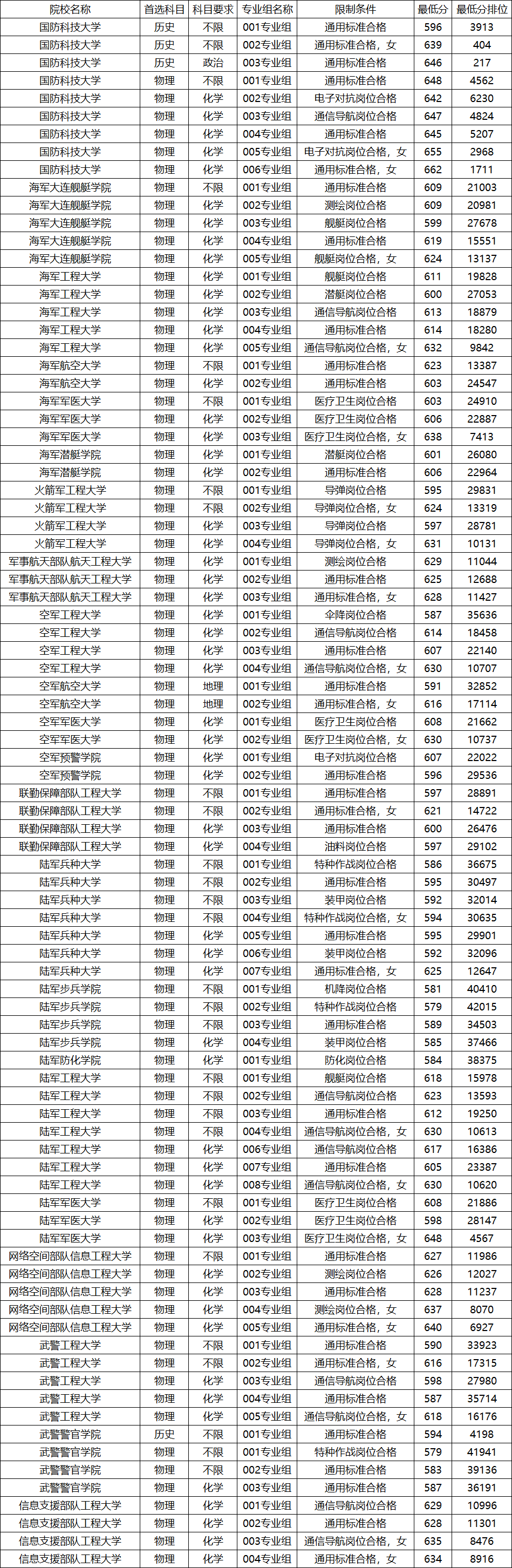 根据2025年安徽省公开数据,22所军校2025年分数线情况如下: