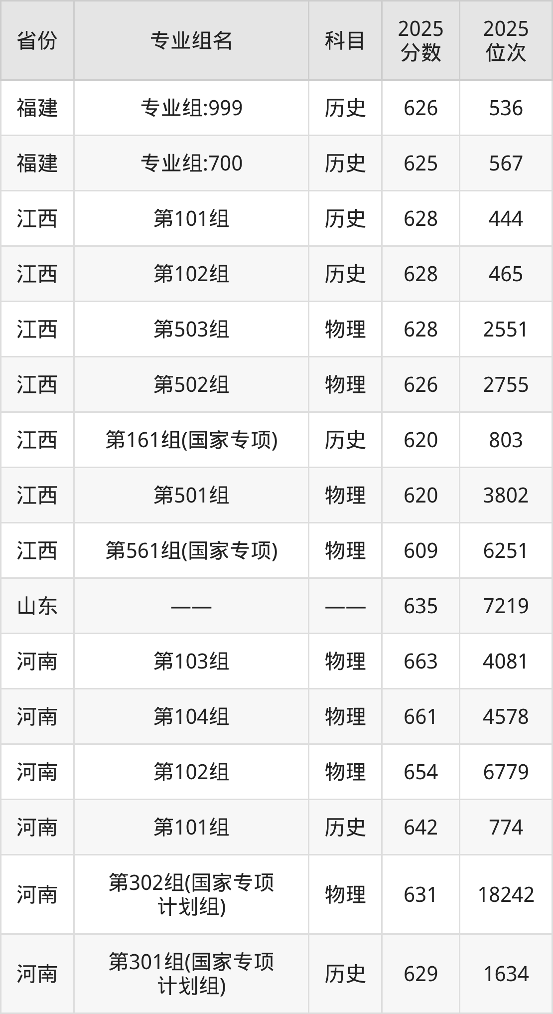 历史类:201组 627分、218组 623分、219组 620分、202组 616分。