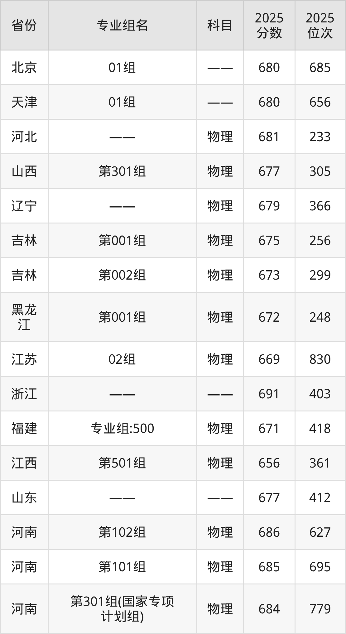下面是中国科学院大学2025年录取分数线一览表: